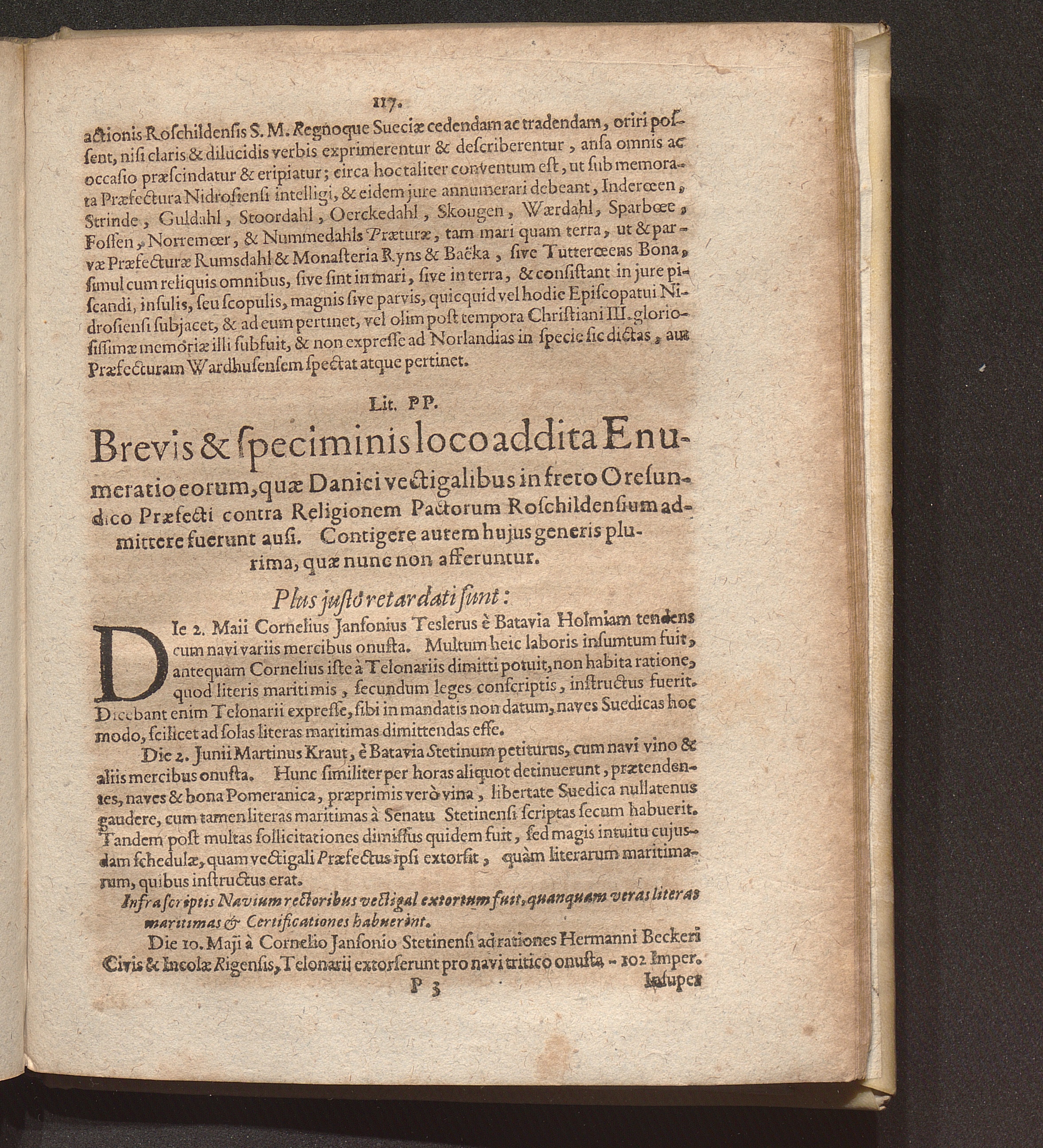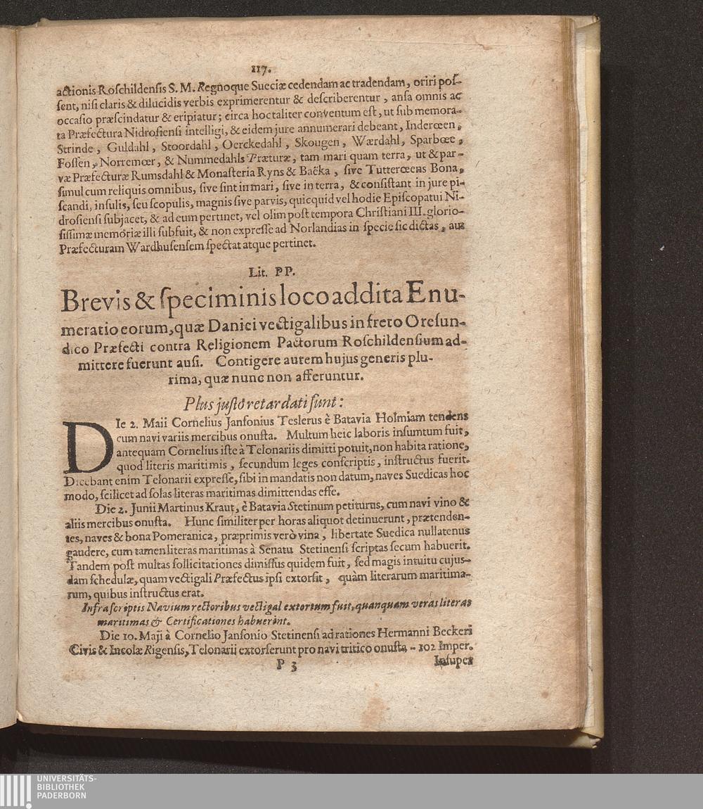Lit PP. Brevis & speciminis loco addita Enumeratio eorum, quae Danici vectigalibus[...]