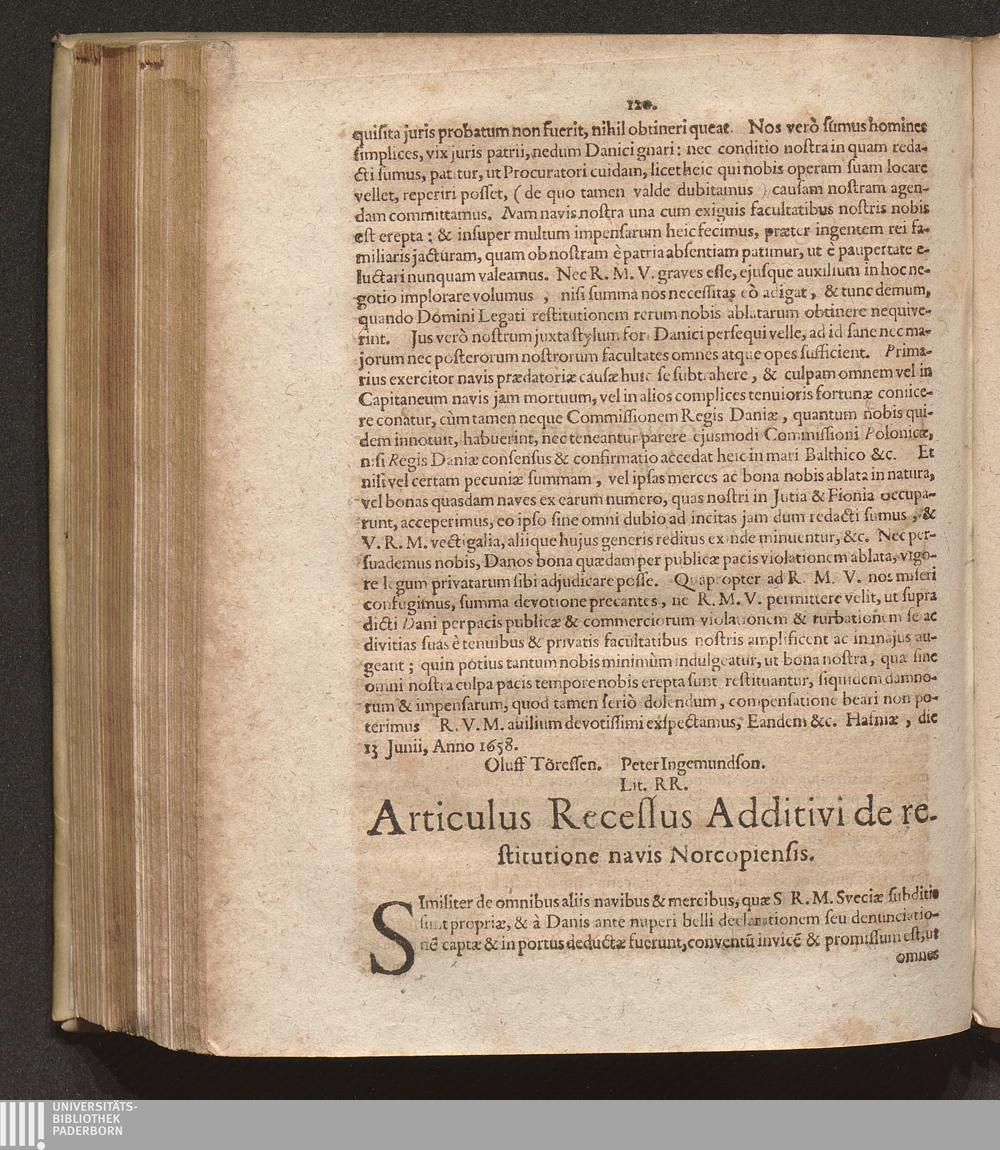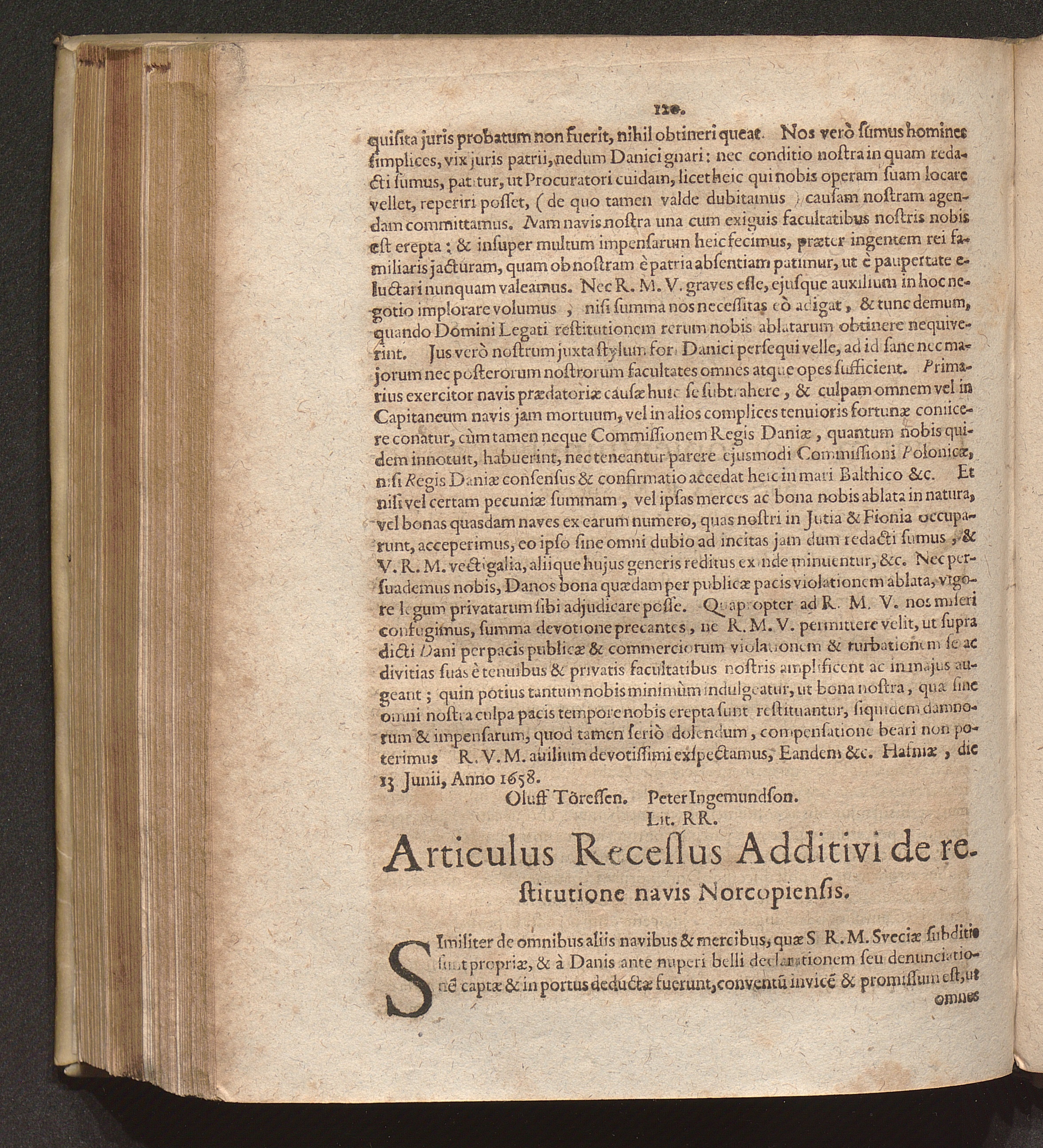 Lit. RR. Articulus Recessus Additivi de restitutione navis Norcopiensis.