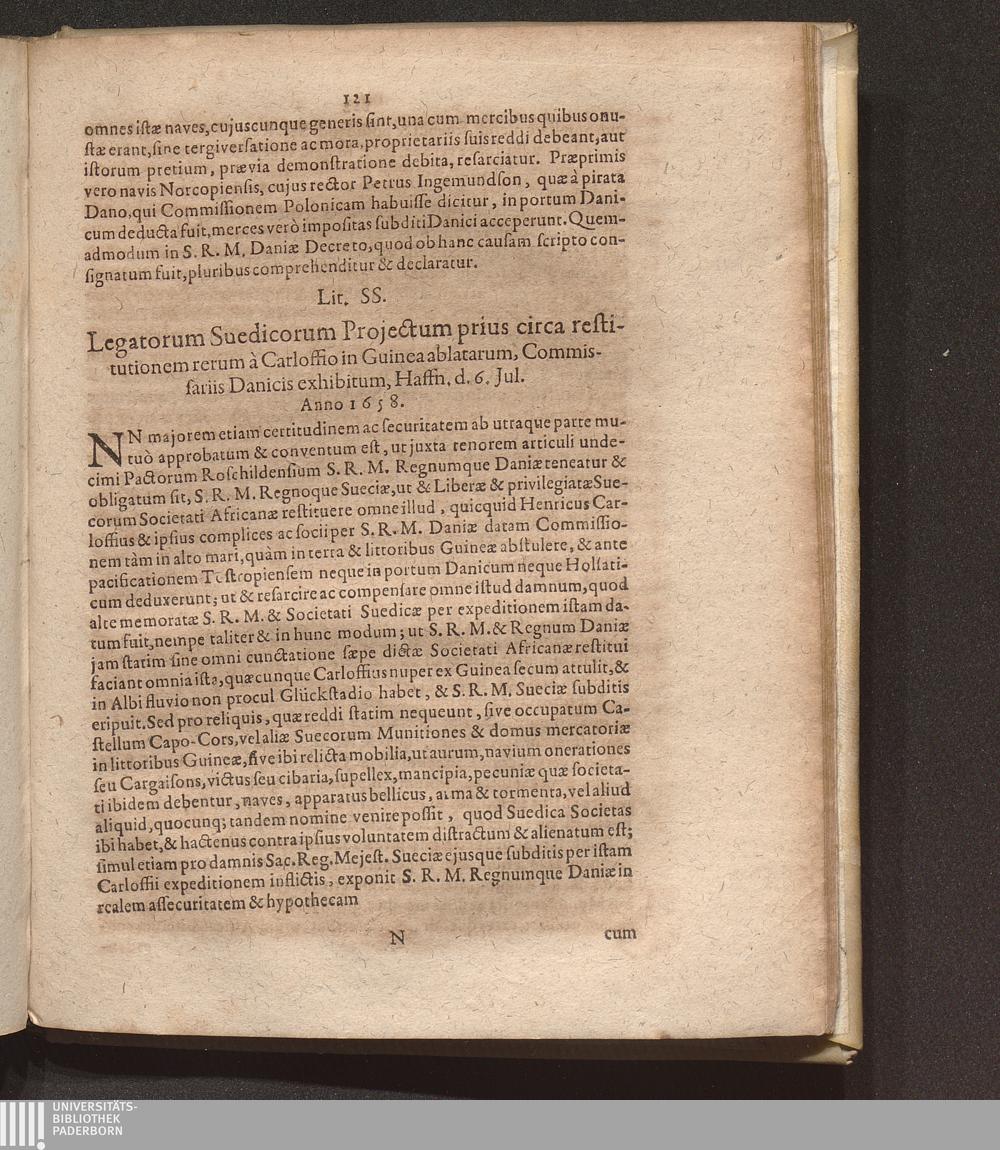 Lit. SS. Legatorum Suedicorum Projectum prius circa restitutionem rerum à Carloffio[...]