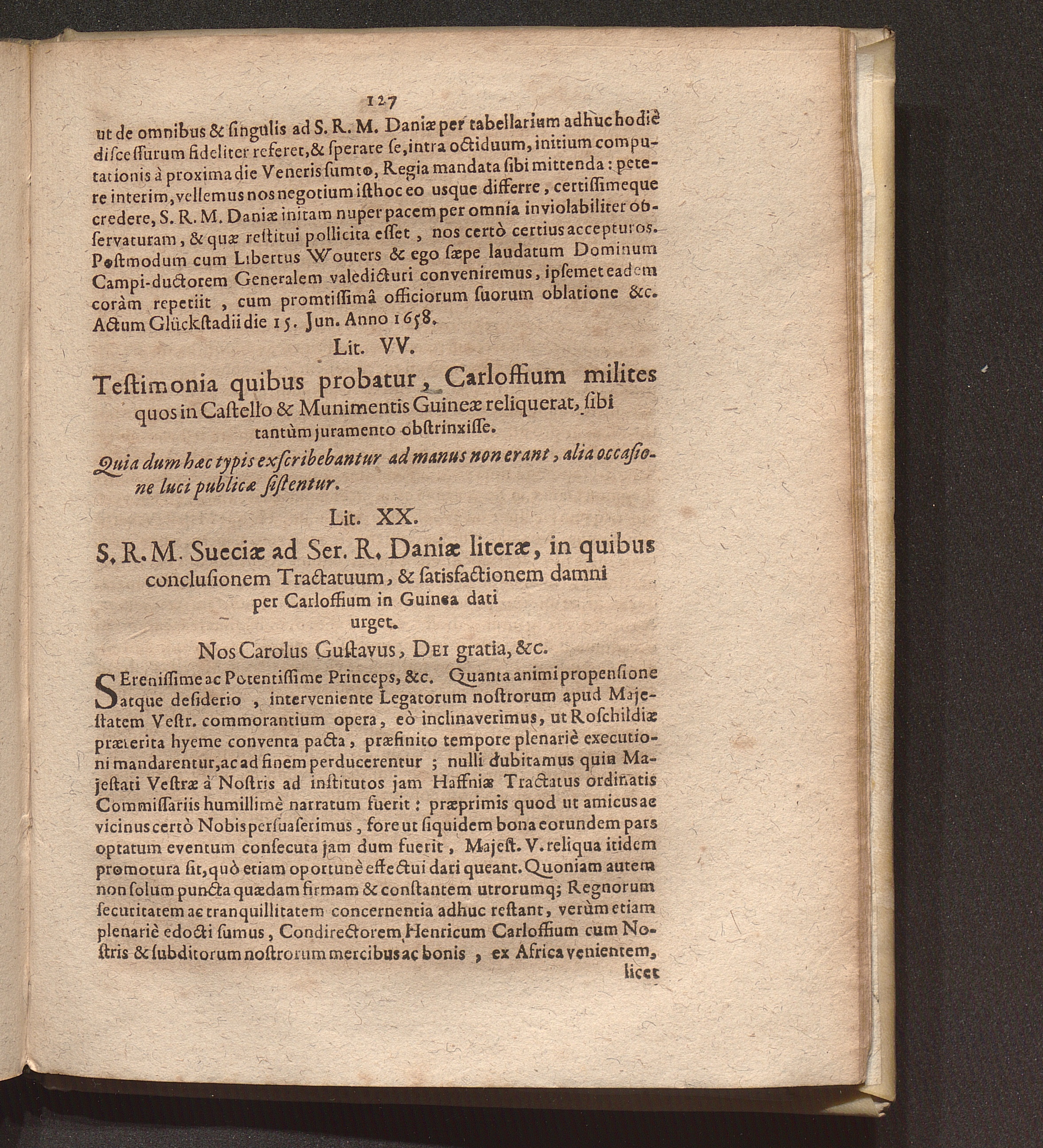 Lit. XX. S. R. M. Sueciae ad Ser. R. Daniae literae, in quibus conclusionem Tractatuum,[...]