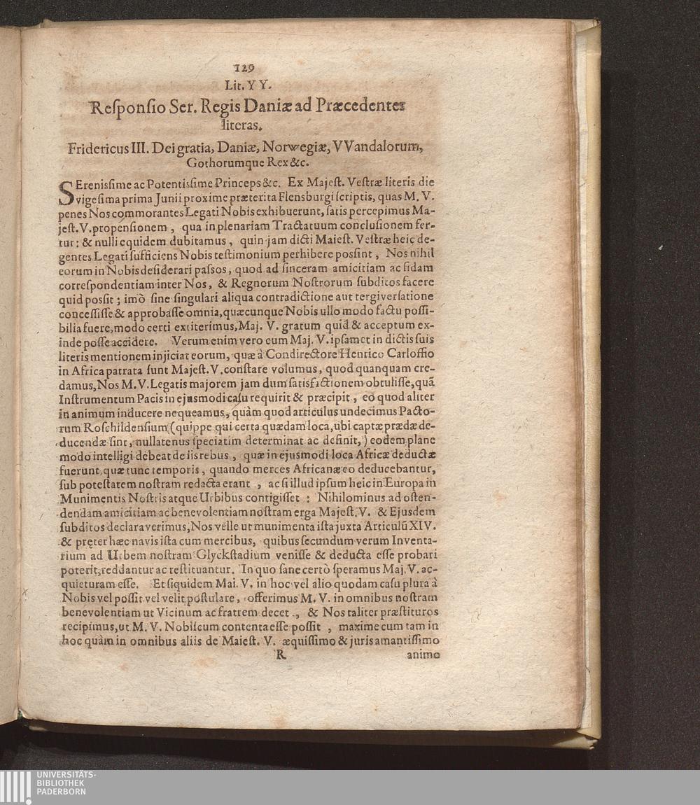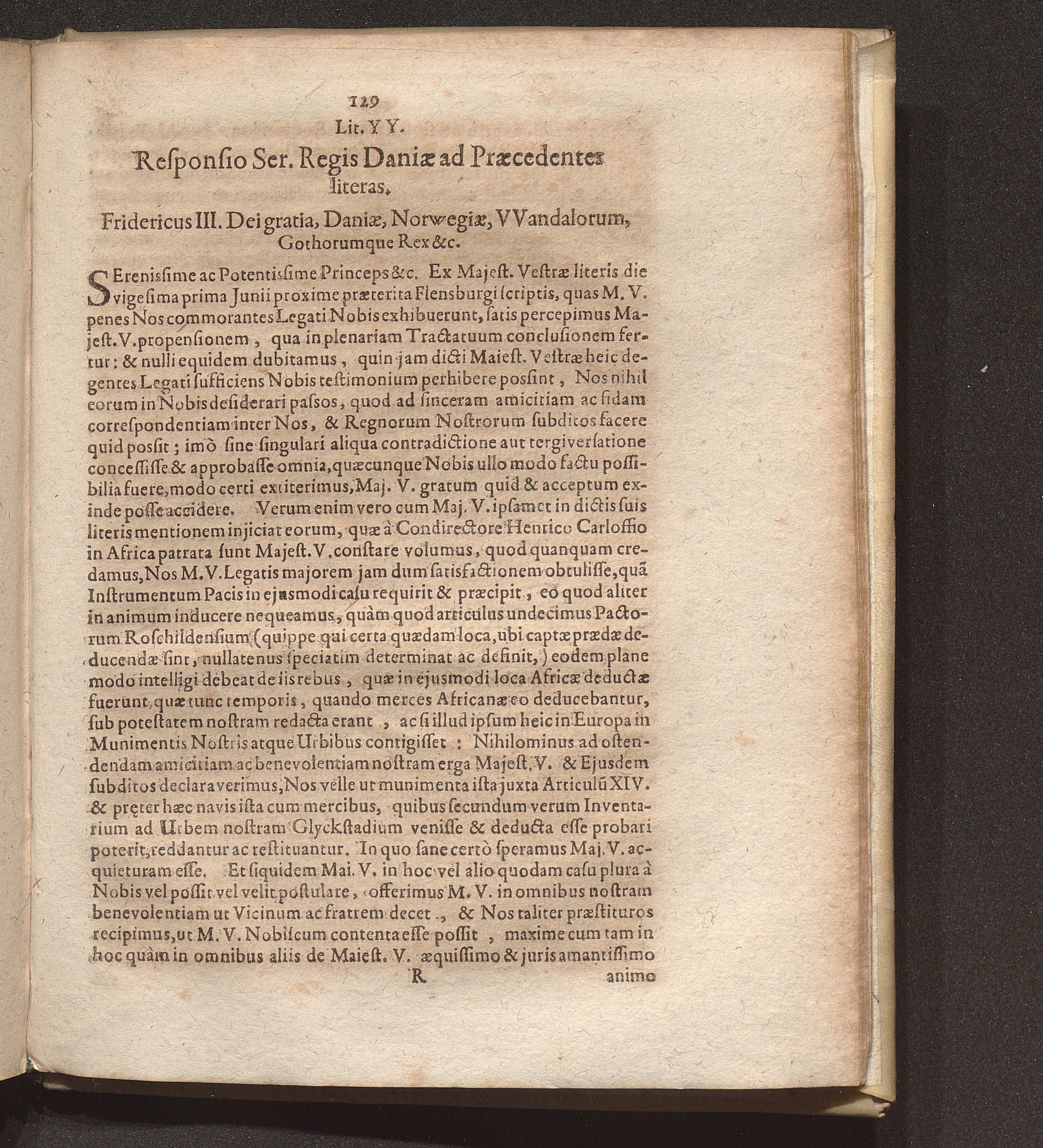 Lit. YY. Responsio Ser. Regis Daniae ad Praecedentes literas.