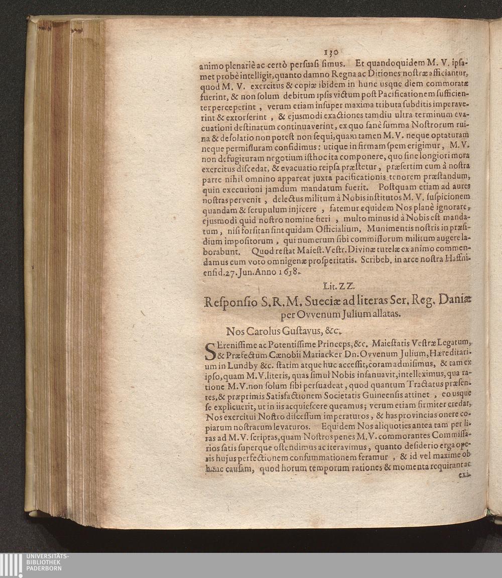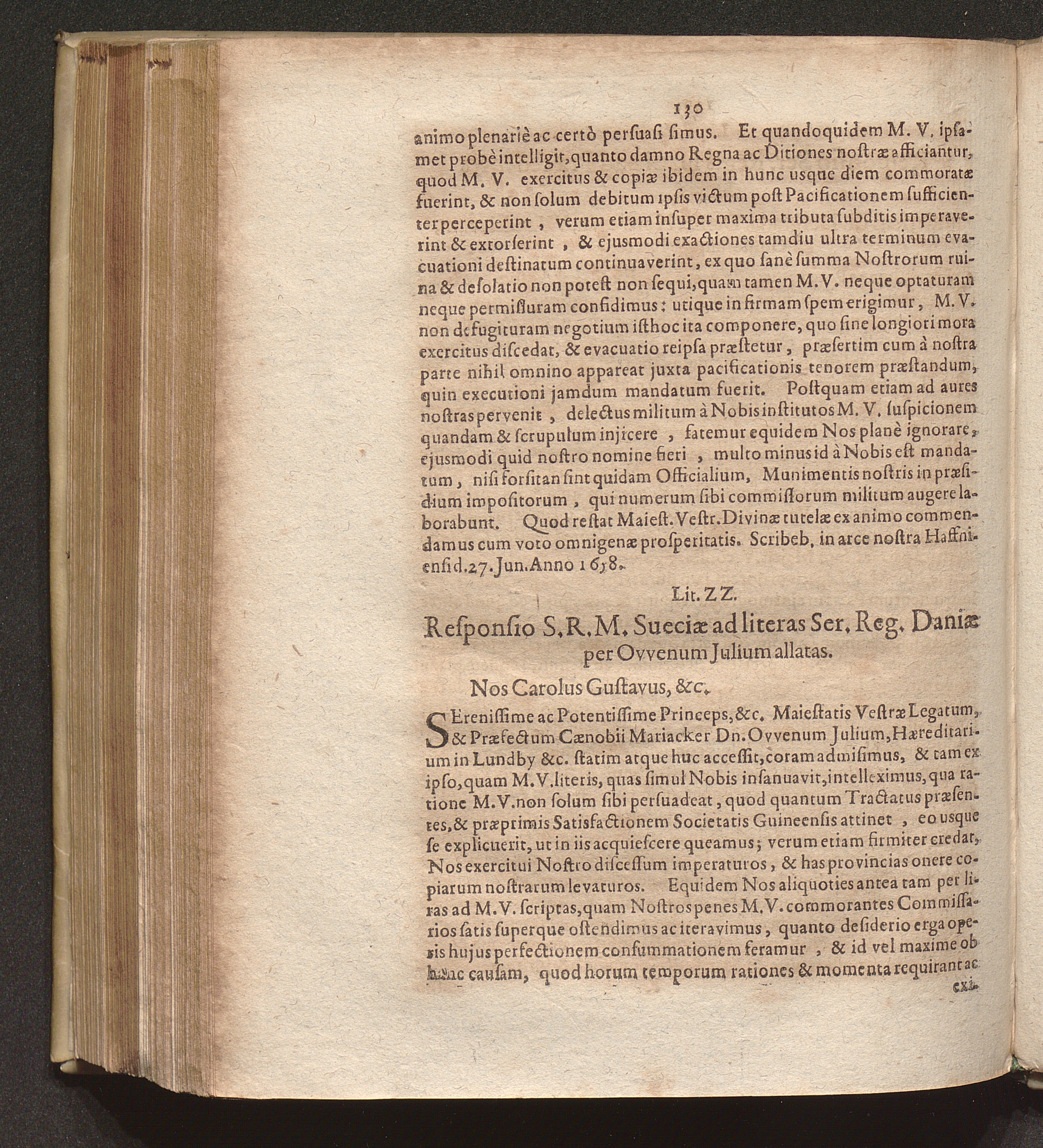 Lit. ZZ. Responsio S. R. M. Sueciae ad literas Ser. Reg. Daniae per Ovvenum Julium[...]