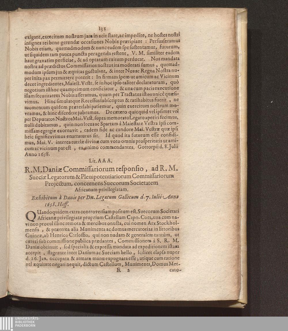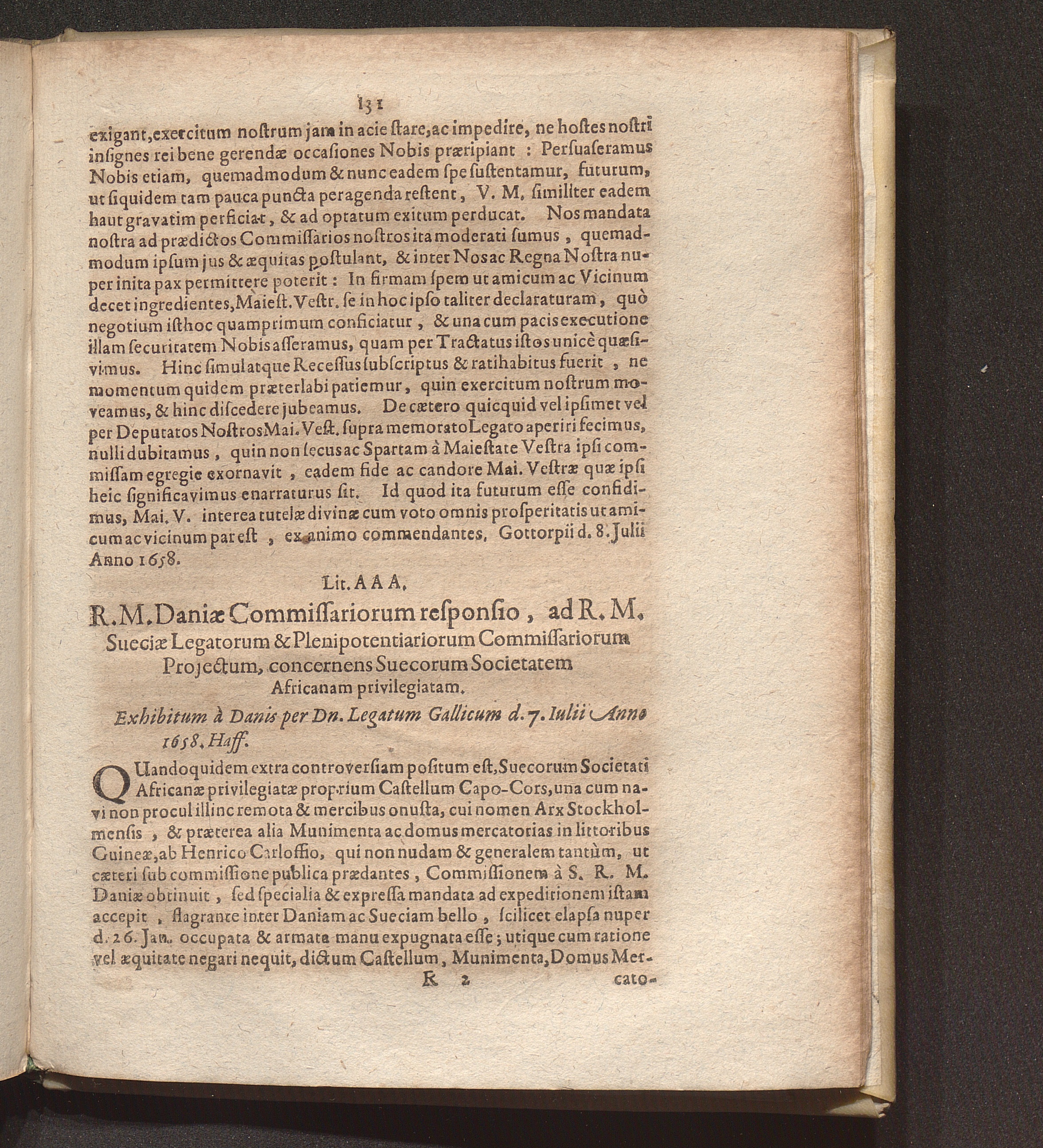 Lit. AAA. R. M. Daniae Commissariorum responsio, ad R. M. Sueciae Legatorum & Plenipotentiariorum[...]
