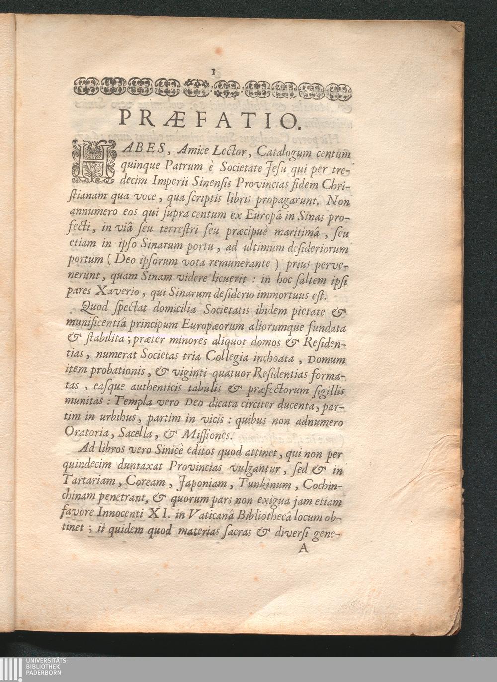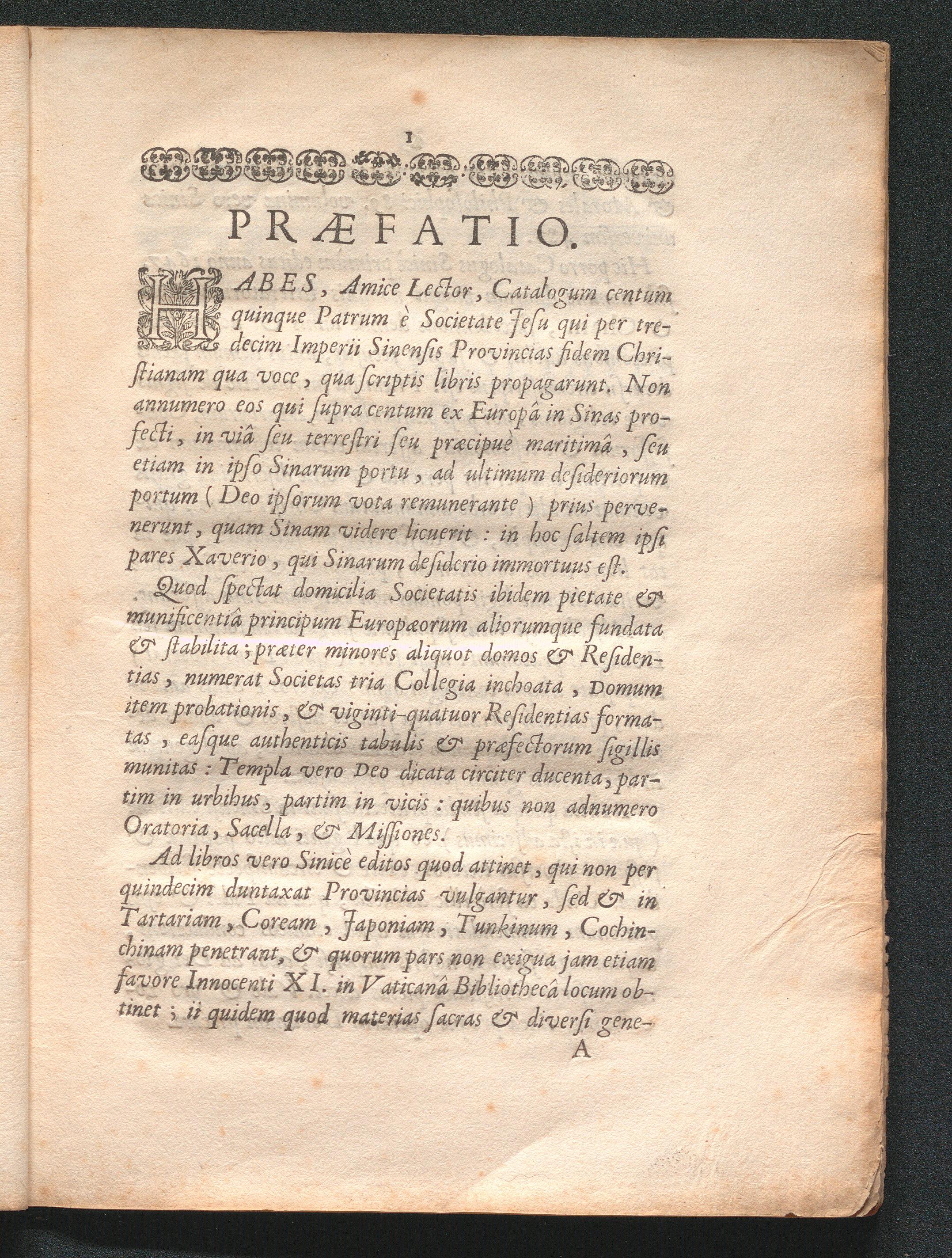 Catalogus Patrum Societatis Jesu : Qui Post Obitum S. Francisci Xaverii primo sæculo, sive ab anno 1581. usque ad 1681. in Imperio Sinarum Jesu-Christi fidem propagarunt. Ubi singulorum nomina, patria, ingressus, prædicatio, mors, sepultura, libri Sinice editi recensentur / [Philippe Couplet]