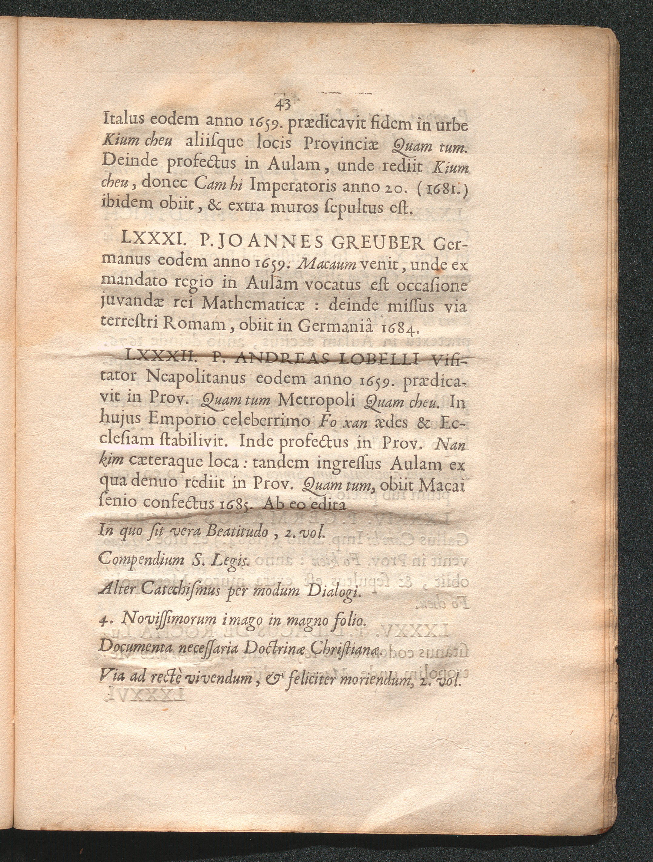 Catalogus Patrum Societatis Jesu : Qui Post Obitum S. Francisci Xaverii primo sæculo, sive ab anno 1581. usque ad 1681. in Imperio Sinarum Jesu-Christi fidem propagarunt. Ubi singulorum nomina, patria, ingressus, prædicatio, mors, sepultura, libri Sinice editi recensentur / [Philippe Couplet]