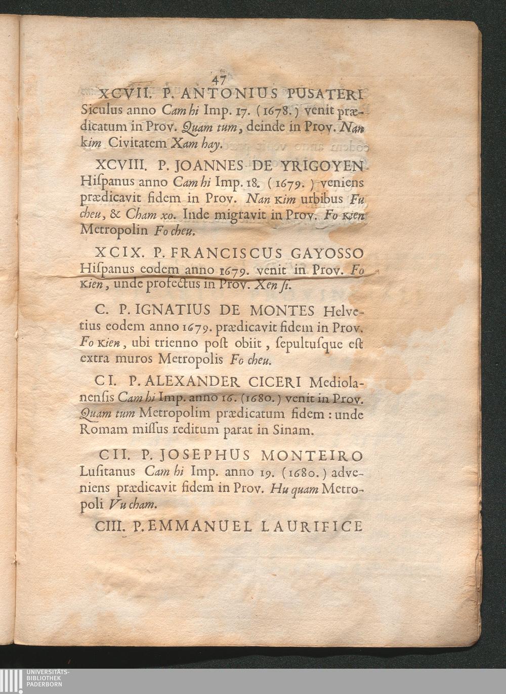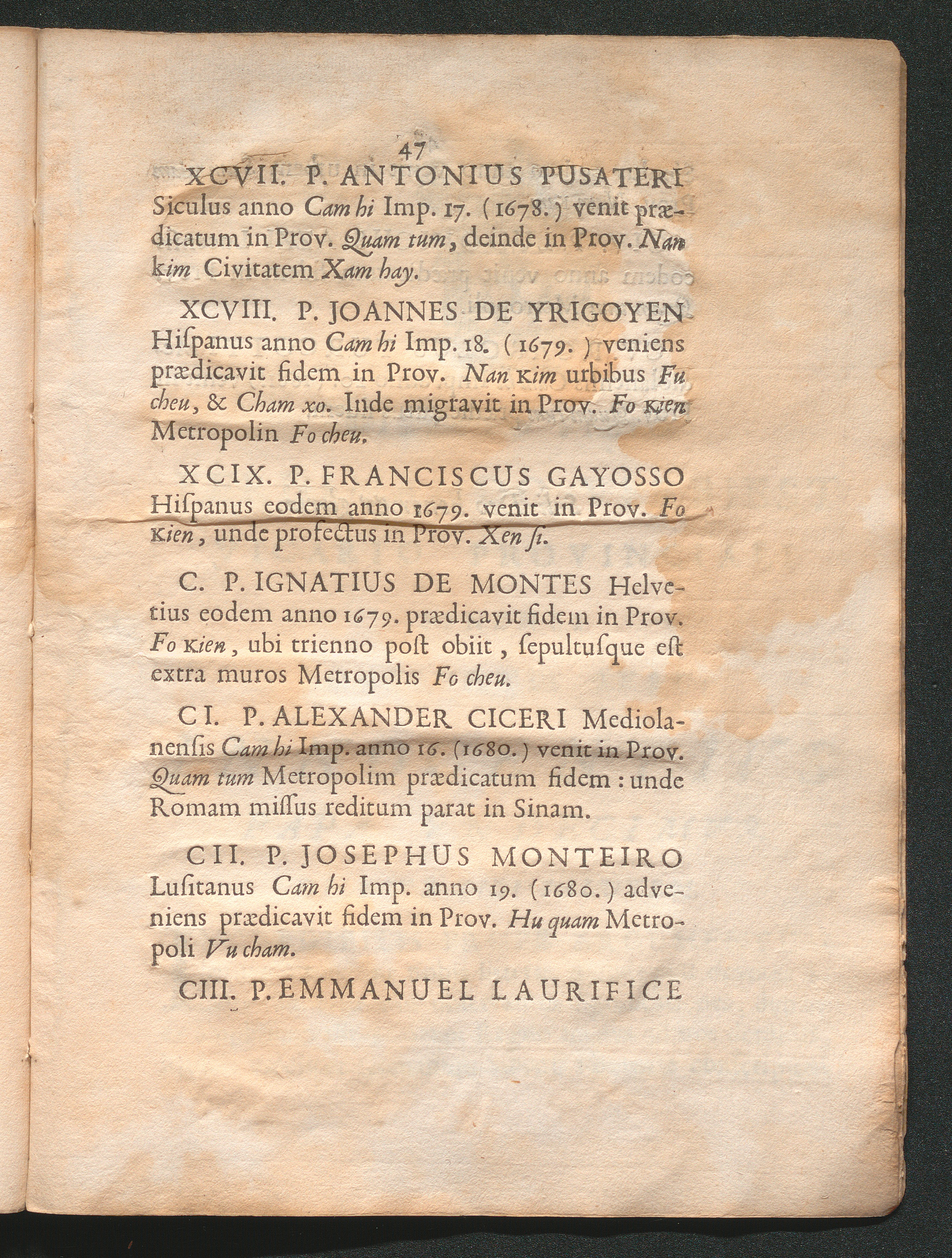 Catalogus Patrum Societatis Jesu : Qui Post Obitum S. Francisci Xaverii primo sæculo, sive ab anno 1581. usque ad 1681. in Imperio Sinarum Jesu-Christi fidem propagarunt. Ubi singulorum nomina, patria, ingressus, prædicatio, mors, sepultura, libri Sinice editi recensentur / [Philippe Couplet]