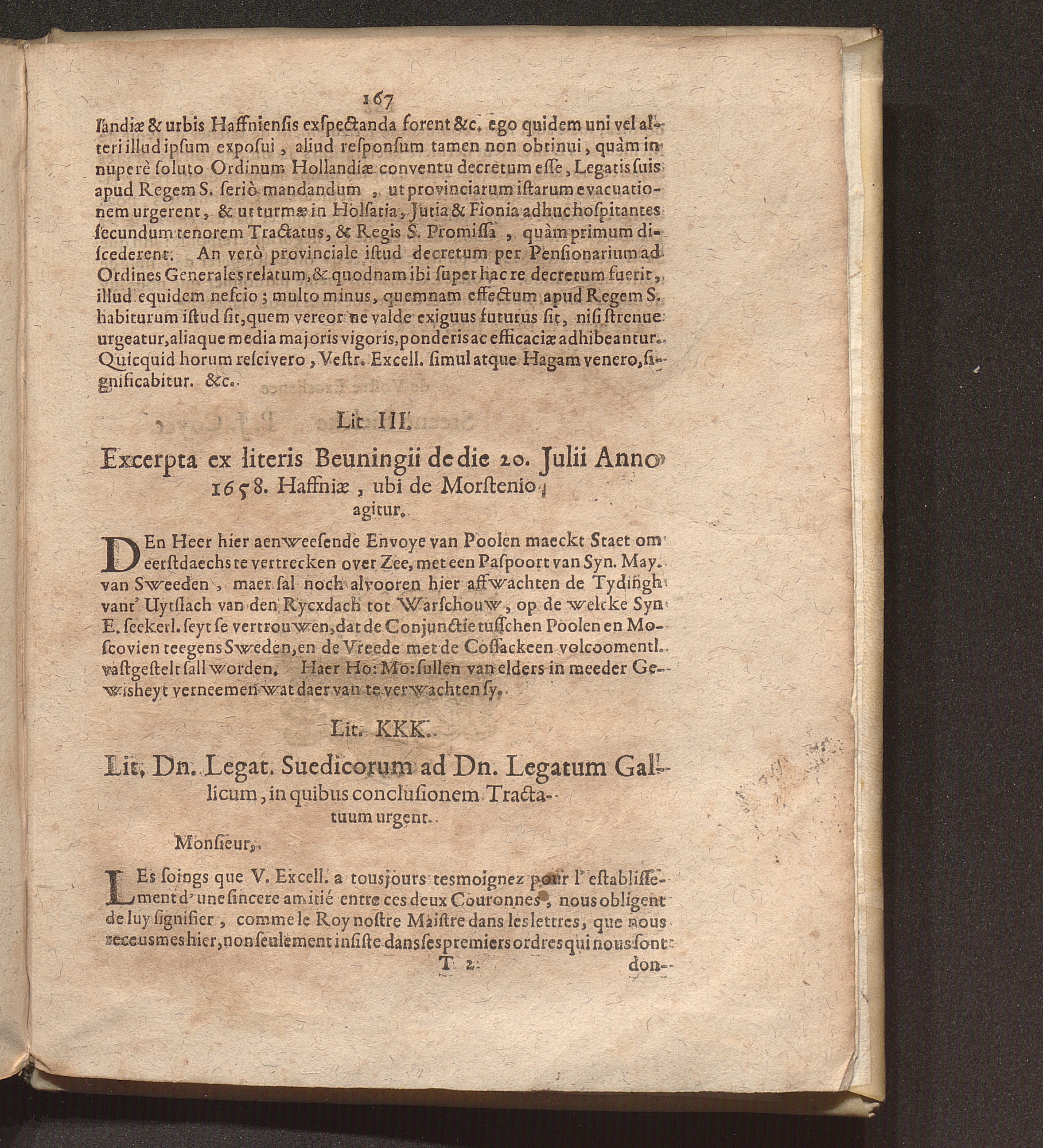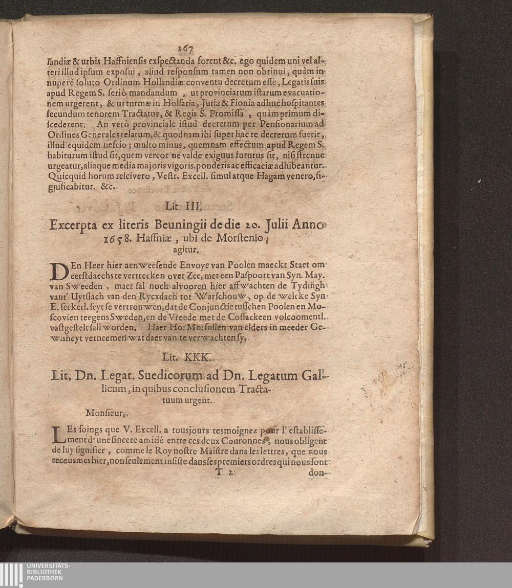Lit. KKK. Lit. Dn. Legat. Suedicorum ad Dn. Legatum Gallicum, in quibus conclusionem[...]