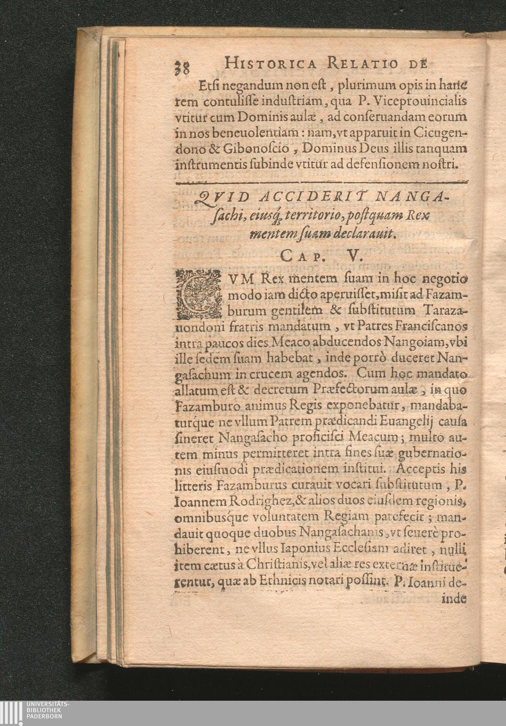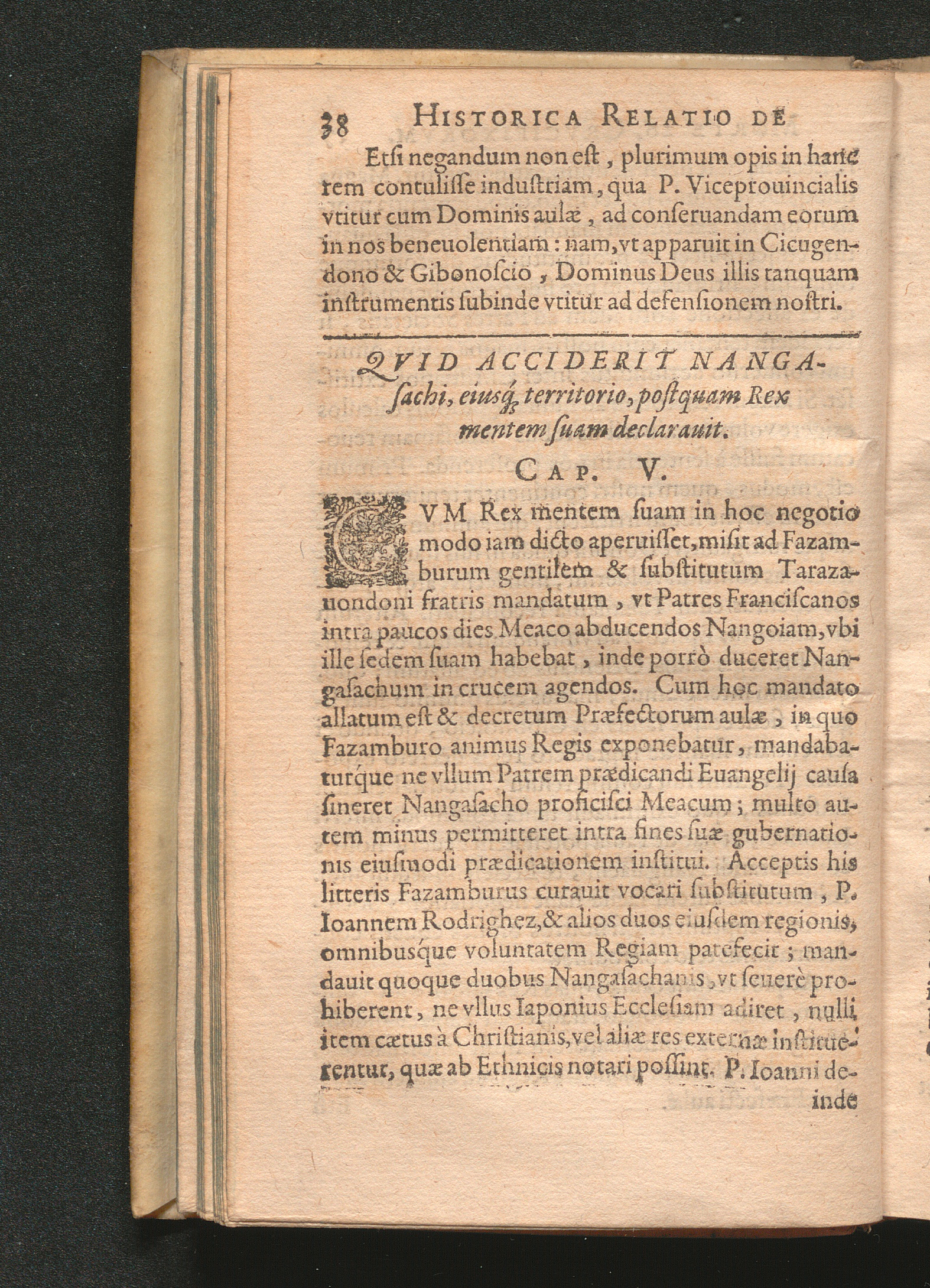 De Rebvs Iaponicis// Historica// Relatio, : Ea-//Qve Triplex: I. De gloriosa morte 26. cruxifixorum.// II. De Legatione Regis Chinensium ad Regem Iapo-//niae, [et] de Prodigiis legationem antegressis.// III. De rebus per Iaponiam anno 1596. a P.P. Soc.// IESV durante persecutione gestis / A R.P. Lvdovico Frois Societatis Iesv, Ad R.P. Clavdivm Aquauiuam eiusdem Societatis Praepositum Generalem missa: Et Ex Italico Idiomate Moguntiae in Latinam linguam translata