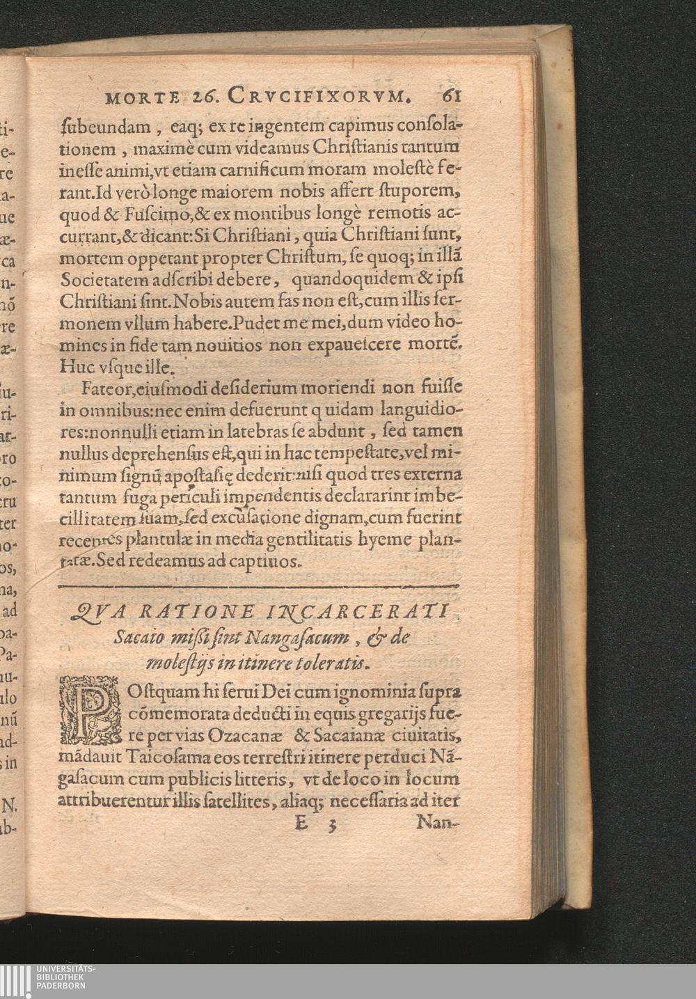 De Rebvs Iaponicis// Historica// Relatio, : Ea-//Qve Triplex: I. De gloriosa morte 26. cruxifixorum.// II. De Legatione Regis Chinensium ad Regem Iapo-//niae, [et] de Prodigiis legationem antegressis.// III. De rebus per Iaponiam anno 1596. a P.P. Soc.// IESV durante persecutione gestis / A R.P. Lvdovico Frois Societatis Iesv, Ad R.P. Clavdivm Aquauiuam eiusdem Societatis Praepositum Generalem missa: Et Ex Italico Idiomate Moguntiae in Latinam linguam translata