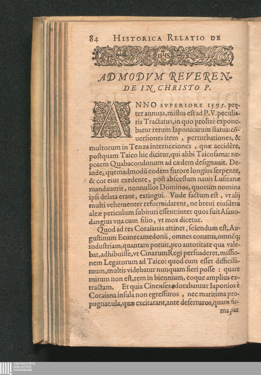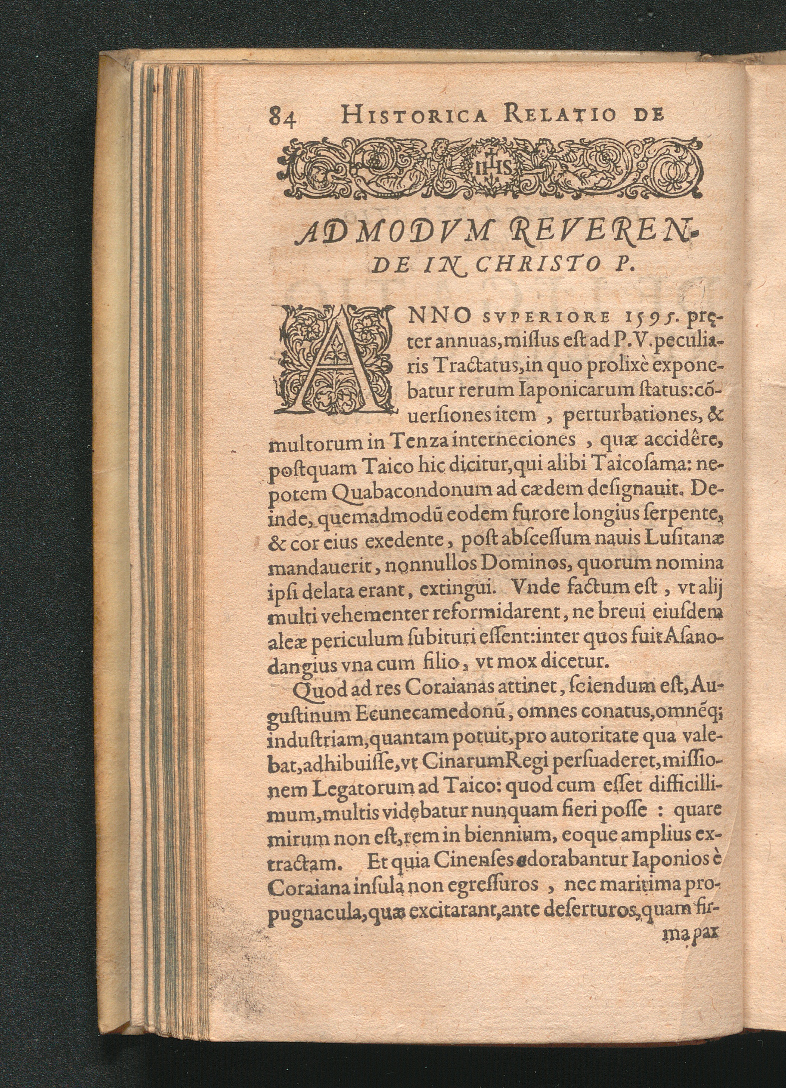De Rebvs Iaponicis// Historica// Relatio, : Ea-//Qve Triplex: I. De gloriosa morte 26. cruxifixorum.// II. De Legatione Regis Chinensium ad Regem Iapo-//niae, [et] de Prodigiis legationem antegressis.// III. De rebus per Iaponiam anno 1596. a P.P. Soc.// IESV durante persecutione gestis / A R.P. Lvdovico Frois Societatis Iesv, Ad R.P. Clavdivm Aquauiuam eiusdem Societatis Praepositum Generalem missa: Et Ex Italico Idiomate Moguntiae in Latinam linguam translata