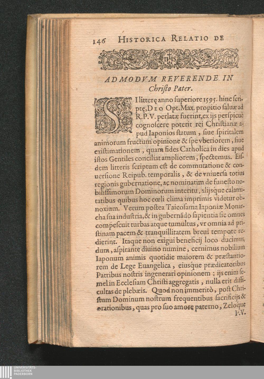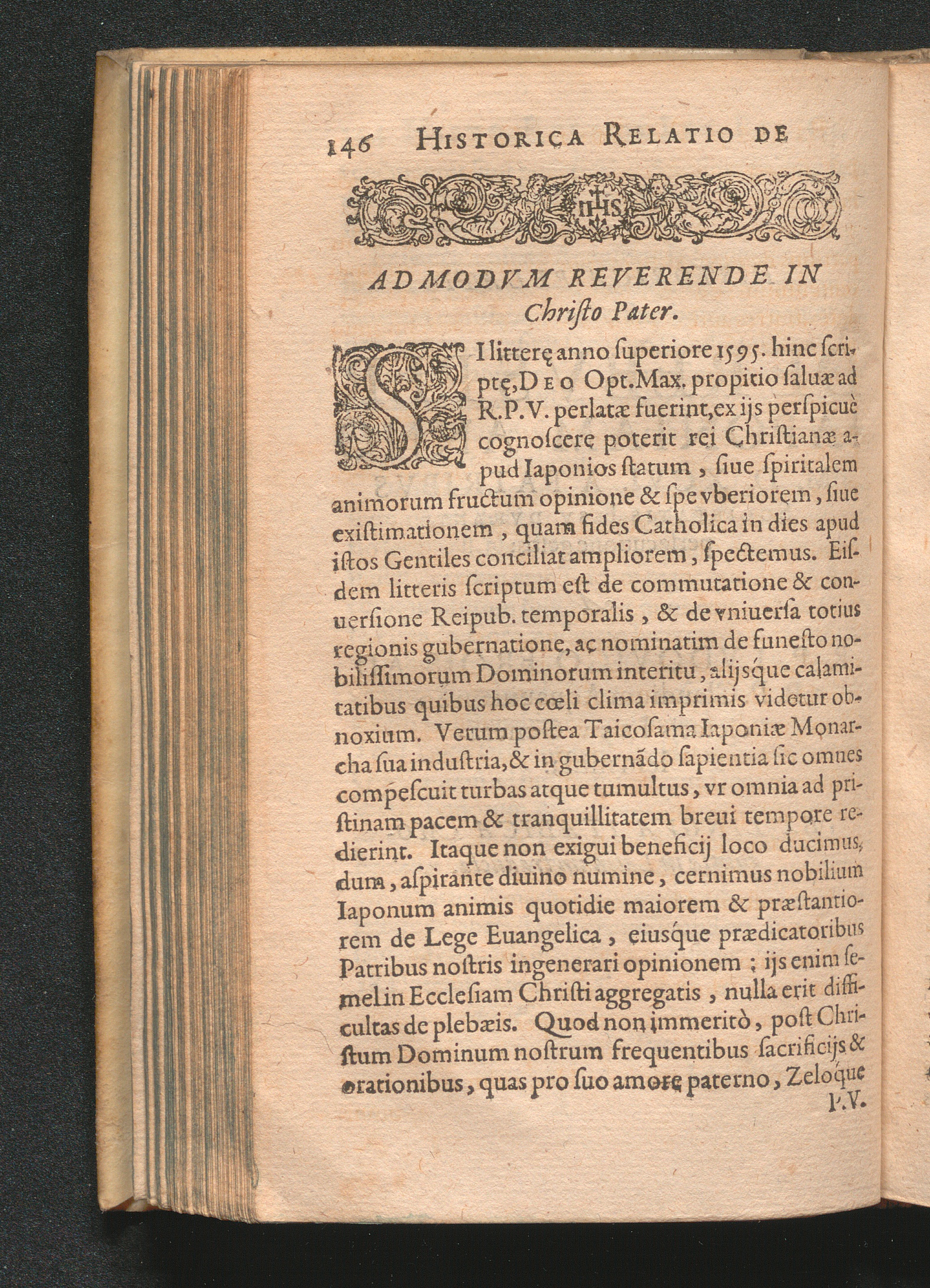 De Rebvs Iaponicis// Historica// Relatio, : Ea-//Qve Triplex: I. De gloriosa morte 26. cruxifixorum.// II. De Legatione Regis Chinensium ad Regem Iapo-//niae, [et] de Prodigiis legationem antegressis.// III. De rebus per Iaponiam anno 1596. a P.P. Soc.// IESV durante persecutione gestis / A R.P. Lvdovico Frois Societatis Iesv, Ad R.P. Clavdivm Aquauiuam eiusdem Societatis Praepositum Generalem missa: Et Ex Italico Idiomate Moguntiae in Latinam linguam translata