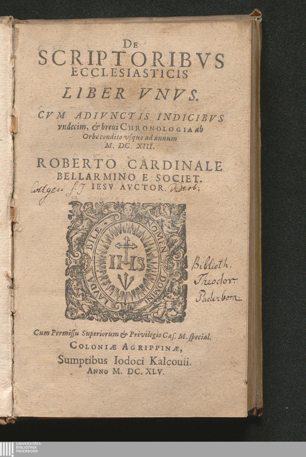 De Scriptoribvs Ecclesiasticis Liber Vnvs
