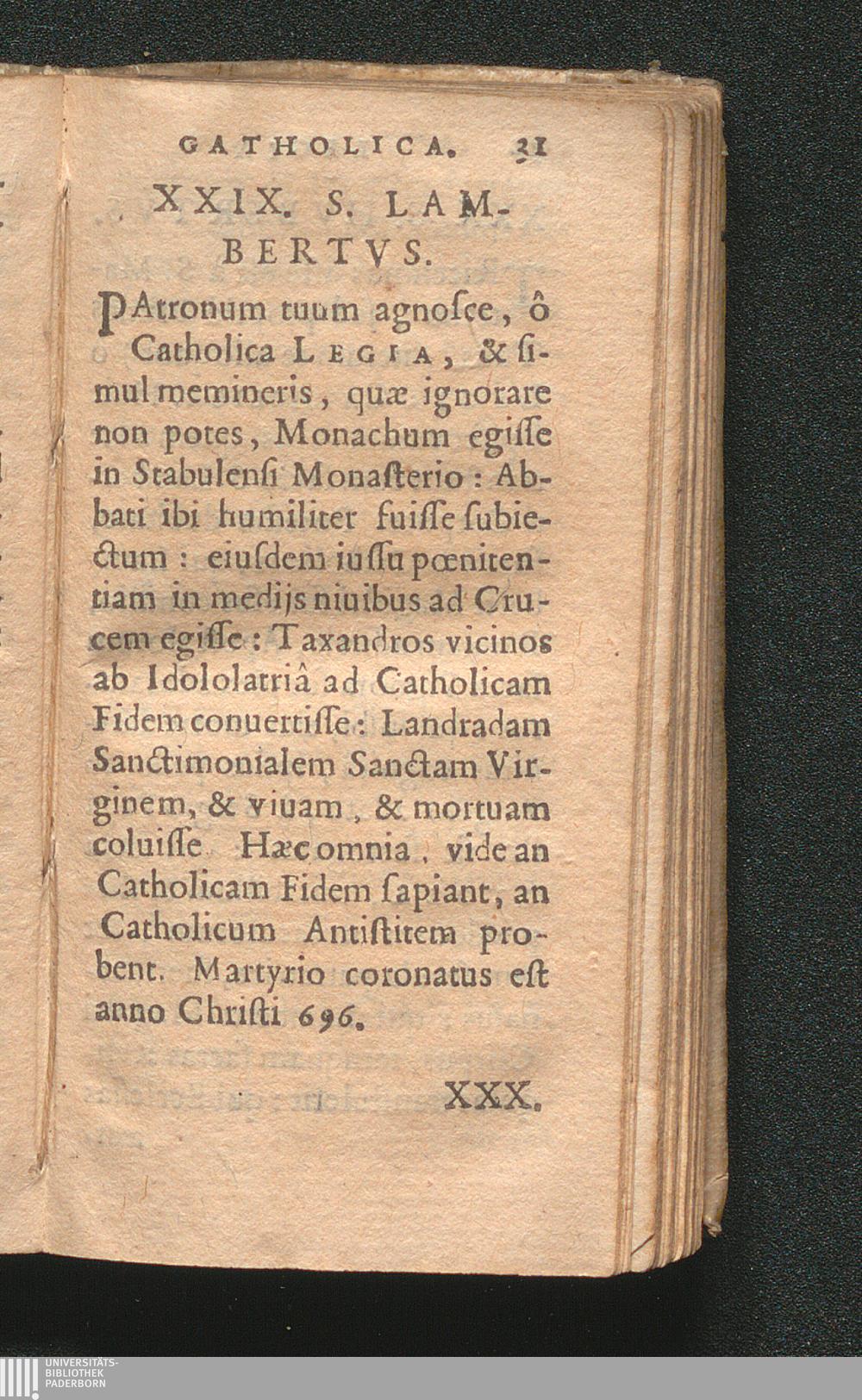 29. S. Lambertus Martyr, Patronus Leodiensis.