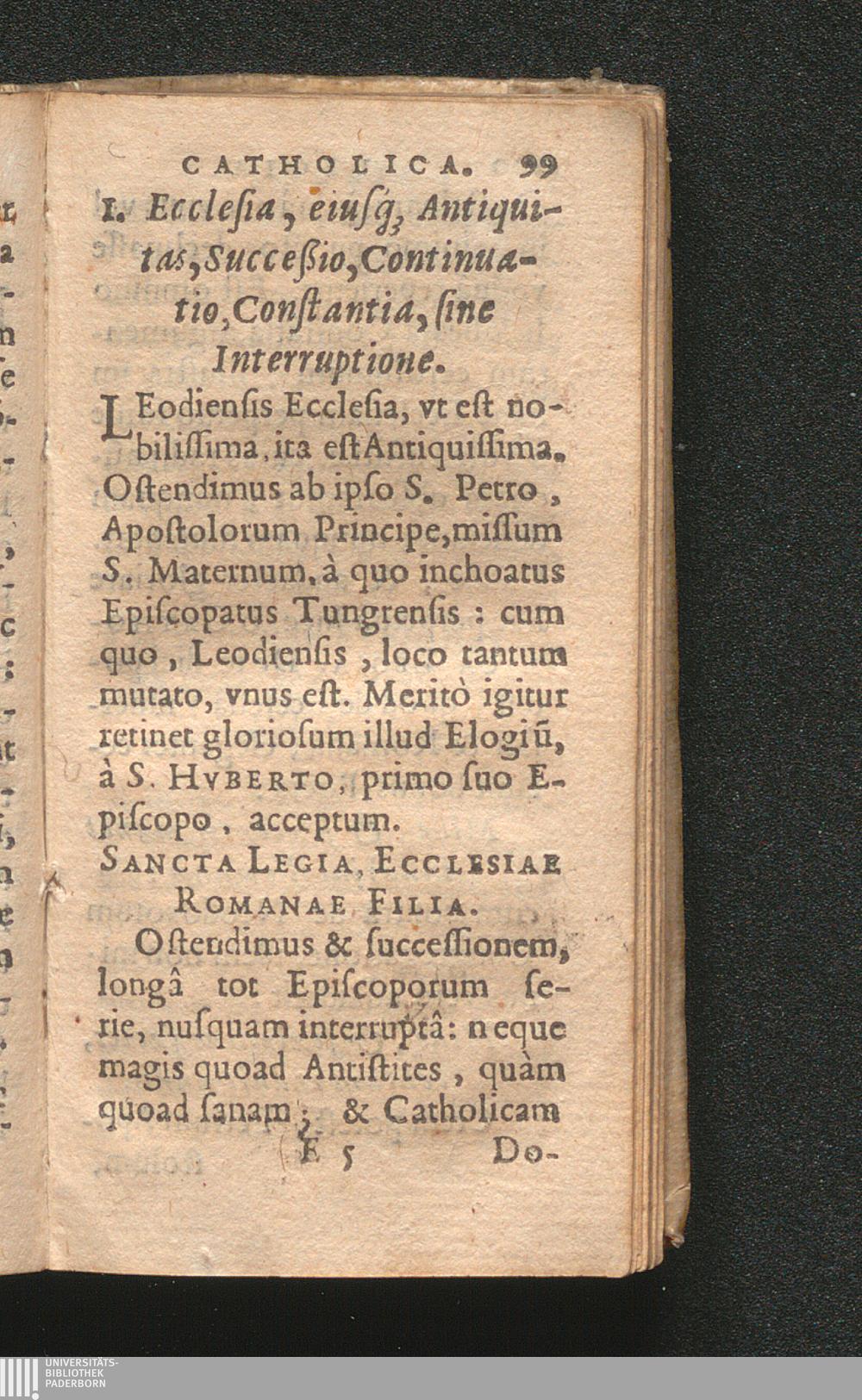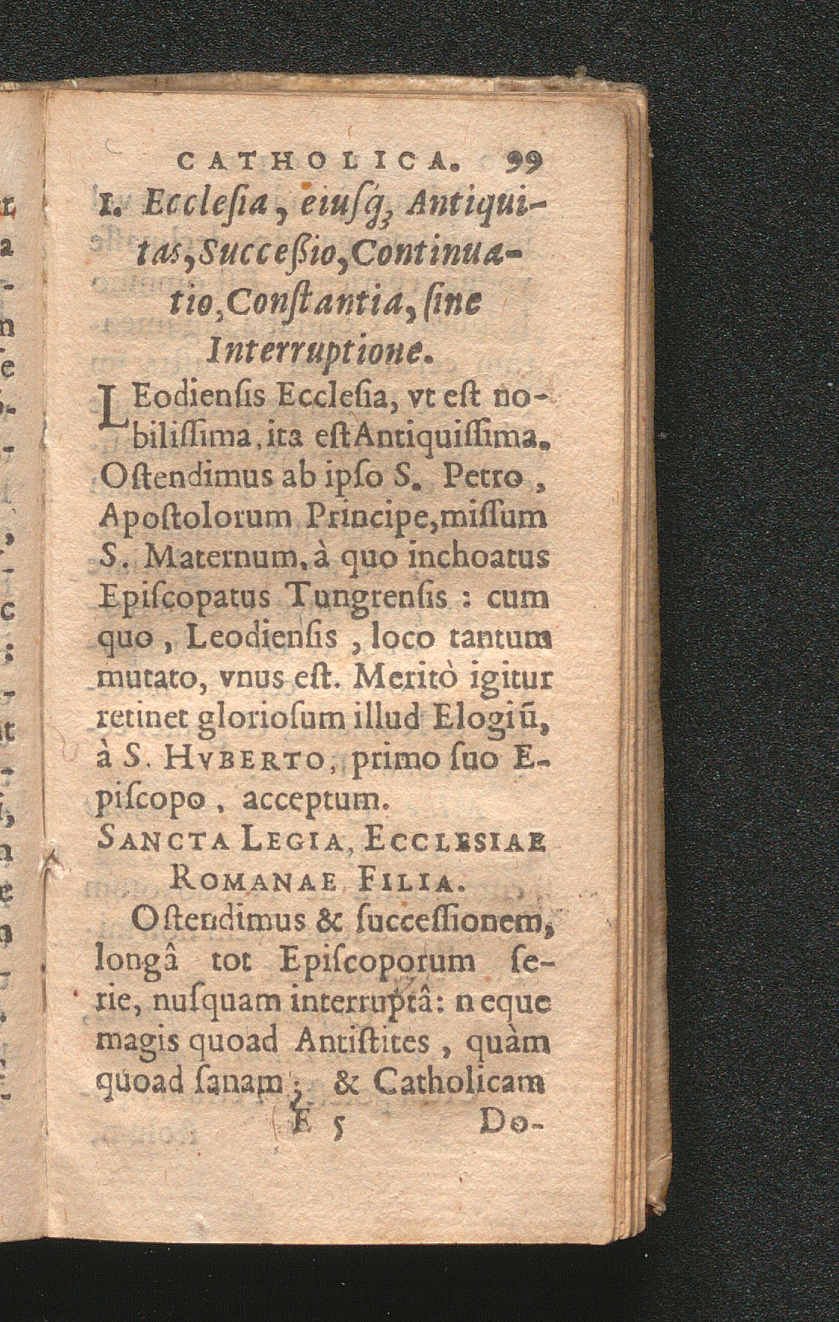 I. Ecclesia, eiusq[ue] Antiquitas, Succeßio, Continuatio, Constantia, sine Inter[...]