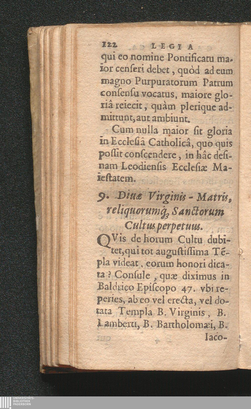 9. Diuæ Virginis - Matris, reliquorumq[ue] Sanctorum Cultus perpetuus.