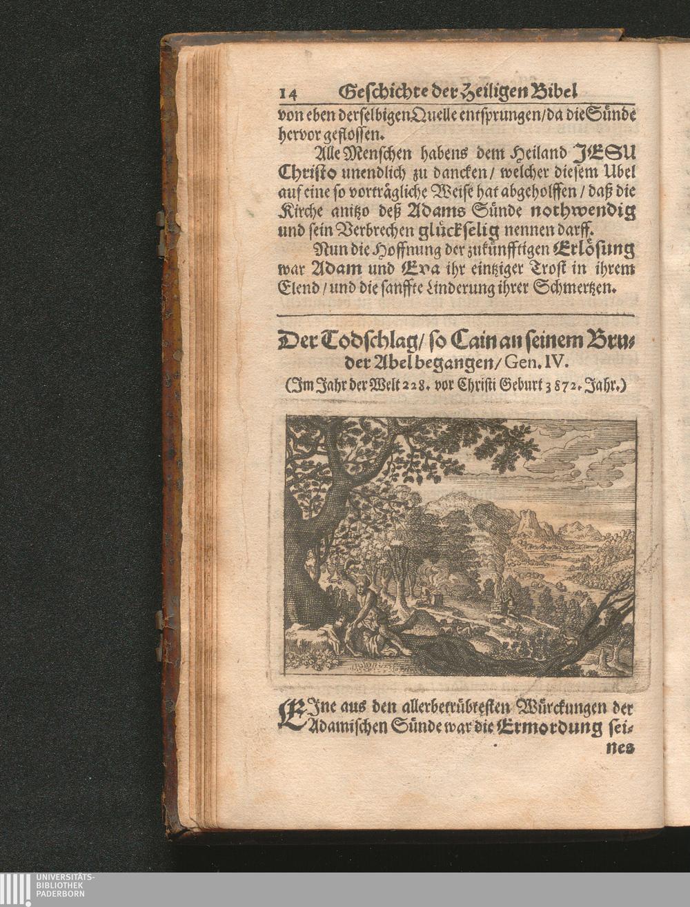 Catholischer Geschicht-Spiegel : Das ist: Historischer Auszug aller Begebenheiten Altes und Neuen Testaments/ mit erbaulichen und Lehrreichen Auslegungen der Heiligen Kirchen-Vätter untermengt; Zur Beförderung Göttlicher Erkandtnuß und Ausbreitung beydes der Macht- und Gnaden-Wercke deß Allerhöchsten/ sowol auf eine anmuhtige Erzehl- als Erklärungs-Art eingerichtet / Anfangs in Frantzösischer Sprach beschrieben durch Herrn de Royaumont, Priorn von Sombreval. Anitzo aber in die Hochteutsche reinlich überbracht durch M. K.