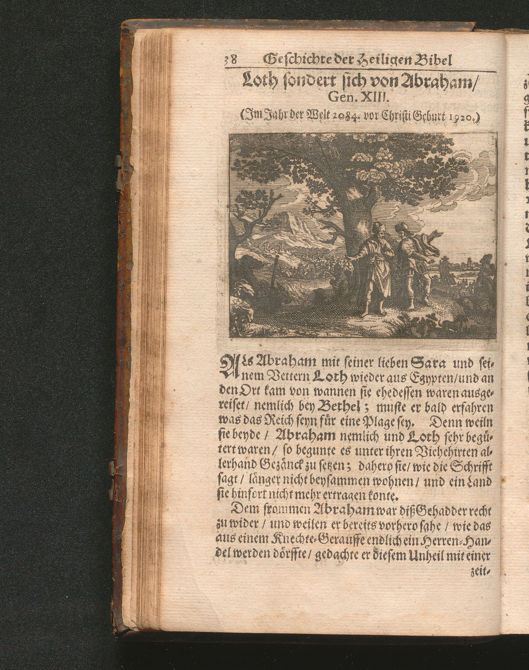 Catholischer Geschicht-Spiegel : Das ist: Historischer Auszug aller Begebenheiten Altes und Neuen Testaments/ mit erbaulichen und Lehrreichen Auslegungen der Heiligen Kirchen-Vätter untermengt; Zur Beförderung Göttlicher Erkandtnuß und Ausbreitung beydes der Macht- und Gnaden-Wercke deß Allerhöchsten/ sowol auf eine anmuhtige Erzehl- als Erklärungs-Art eingerichtet / Anfangs in Frantzösischer Sprach beschrieben durch Herrn de Royaumont, Priorn von Sombreval. Anitzo aber in die Hochteutsche reinlich überbracht durch M. K.