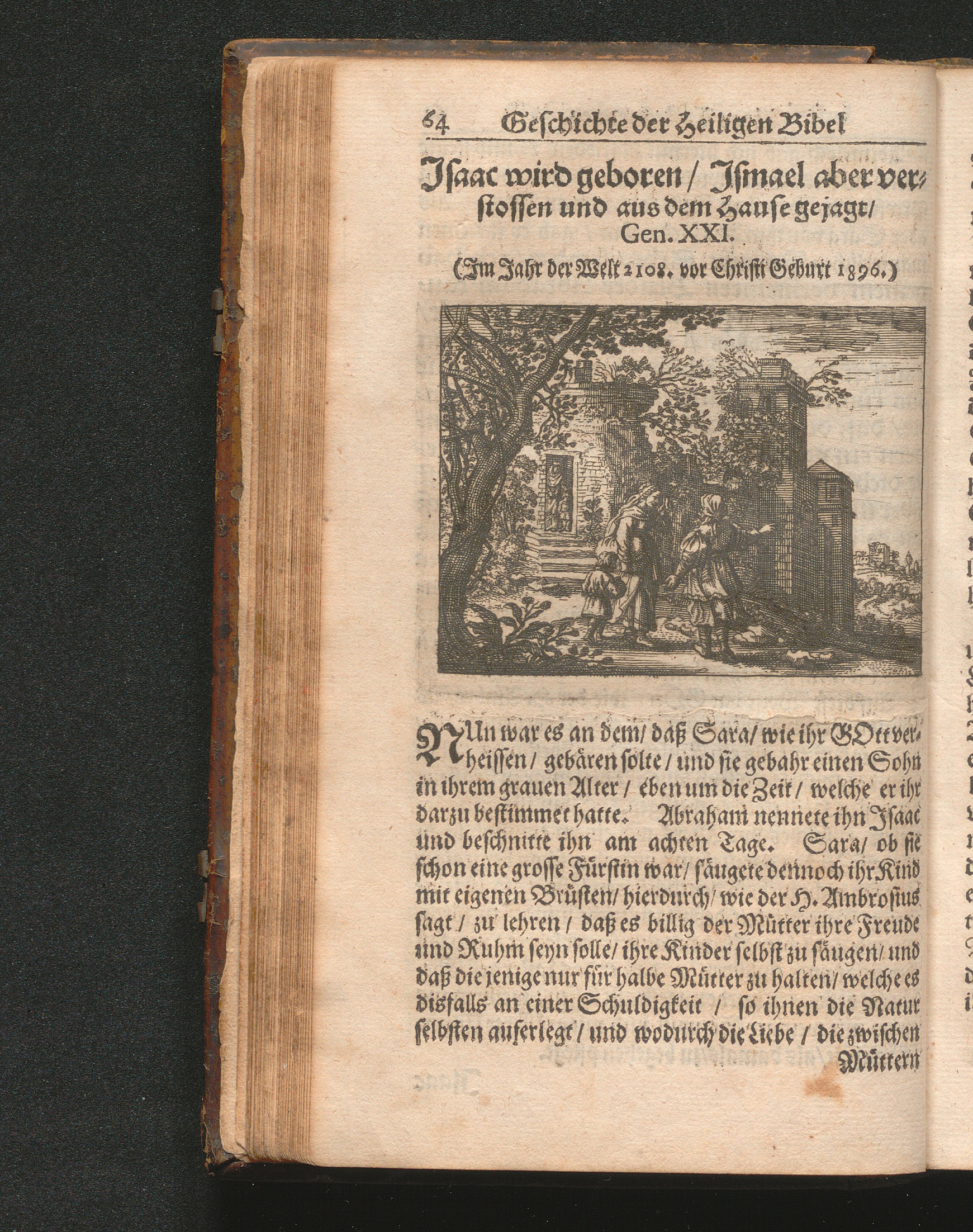 Catholischer Geschicht-Spiegel : Das ist: Historischer Auszug aller Begebenheiten Altes und Neuen Testaments/ mit erbaulichen und Lehrreichen Auslegungen der Heiligen Kirchen-Vätter untermengt; Zur Beförderung Göttlicher Erkandtnuß und Ausbreitung beydes der Macht- und Gnaden-Wercke deß Allerhöchsten/ sowol auf eine anmuhtige Erzehl- als Erklärungs-Art eingerichtet / Anfangs in Frantzösischer Sprach beschrieben durch Herrn de Royaumont, Priorn von Sombreval. Anitzo aber in die Hochteutsche reinlich überbracht durch M. K.