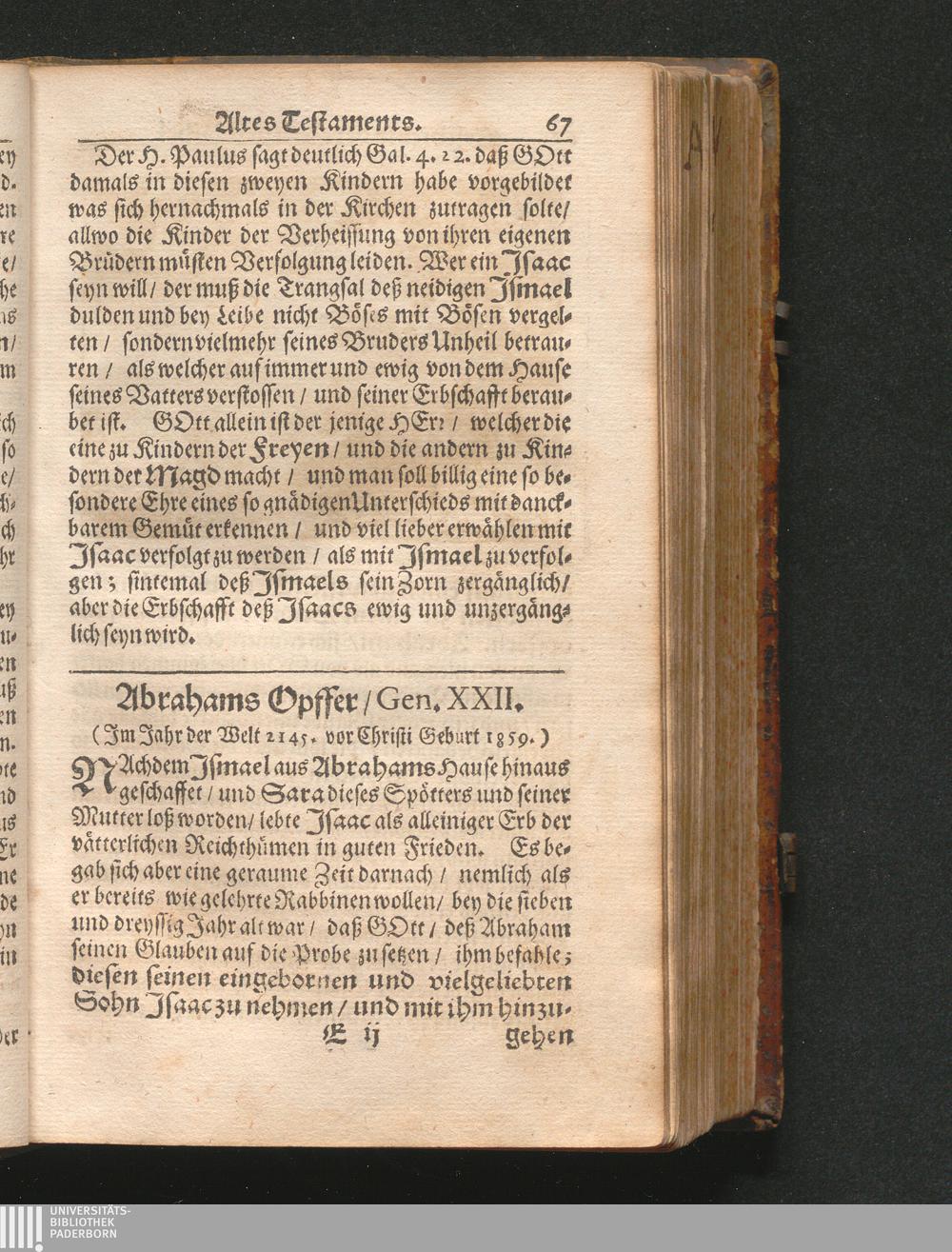 Catholischer Geschicht-Spiegel : Das ist: Historischer Auszug aller Begebenheiten Altes und Neuen Testaments/ mit erbaulichen und Lehrreichen Auslegungen der Heiligen Kirchen-Vätter untermengt; Zur Beförderung Göttlicher Erkandtnuß und Ausbreitung beydes der Macht- und Gnaden-Wercke deß Allerhöchsten/ sowol auf eine anmuhtige Erzehl- als Erklärungs-Art eingerichtet / Anfangs in Frantzösischer Sprach beschrieben durch Herrn de Royaumont, Priorn von Sombreval. Anitzo aber in die Hochteutsche reinlich überbracht durch M. K.
