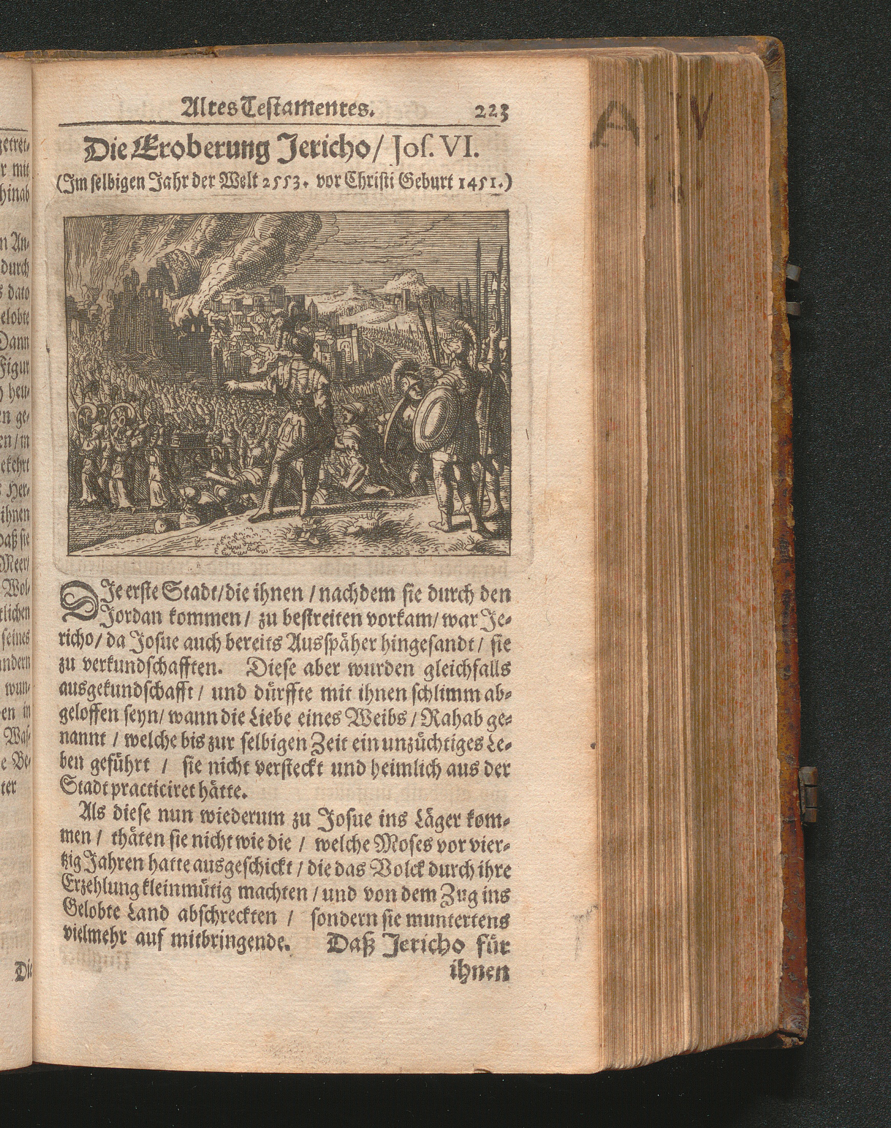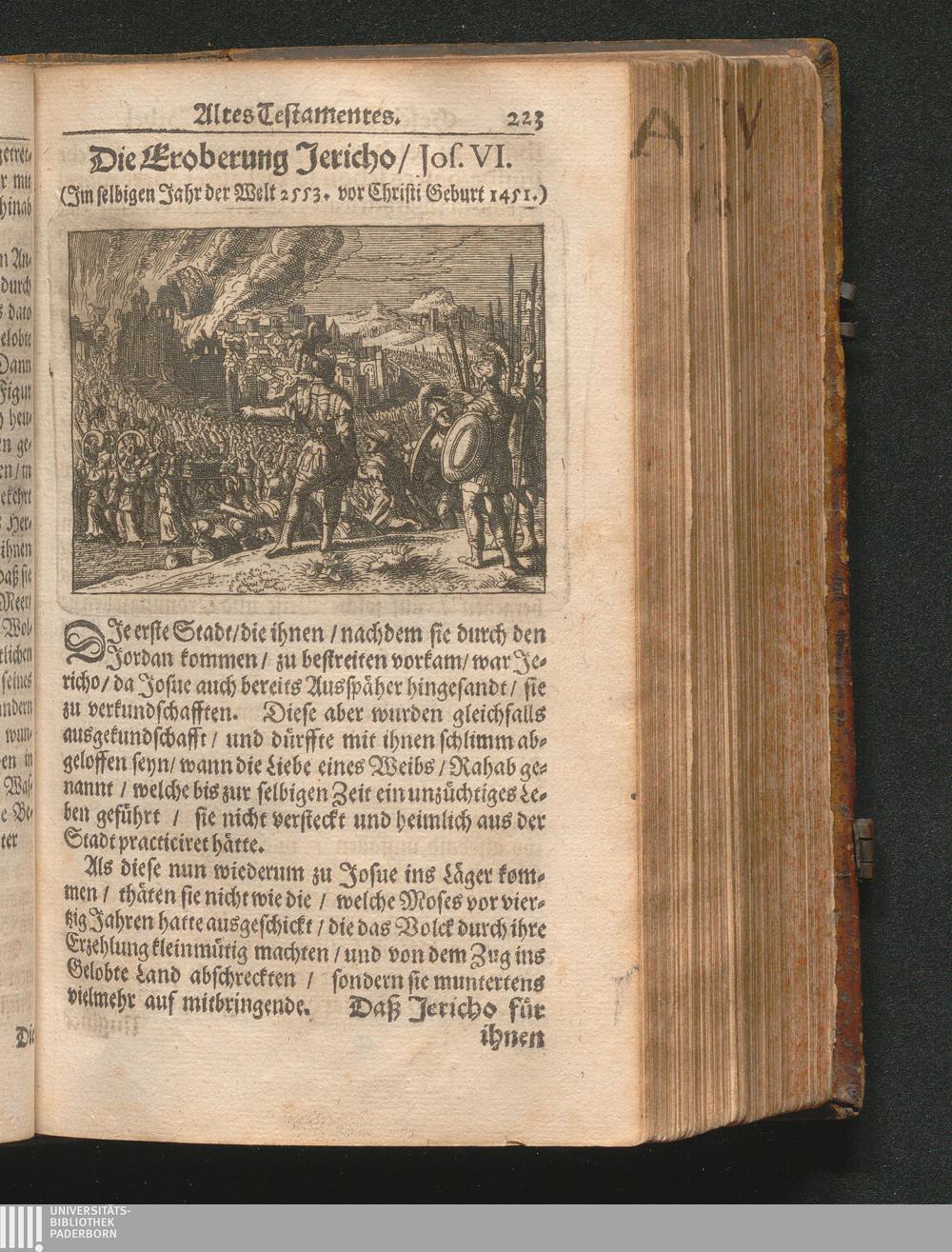 Catholischer Geschicht-Spiegel : Das ist: Historischer Auszug aller Begebenheiten Altes und Neuen Testaments/ mit erbaulichen und Lehrreichen Auslegungen der Heiligen Kirchen-Vätter untermengt; Zur Beförderung Göttlicher Erkandtnuß und Ausbreitung beydes der Macht- und Gnaden-Wercke deß Allerhöchsten/ sowol auf eine anmuhtige Erzehl- als Erklärungs-Art eingerichtet / Anfangs in Frantzösischer Sprach beschrieben durch Herrn de Royaumont, Priorn von Sombreval. Anitzo aber in die Hochteutsche reinlich überbracht durch M. K.