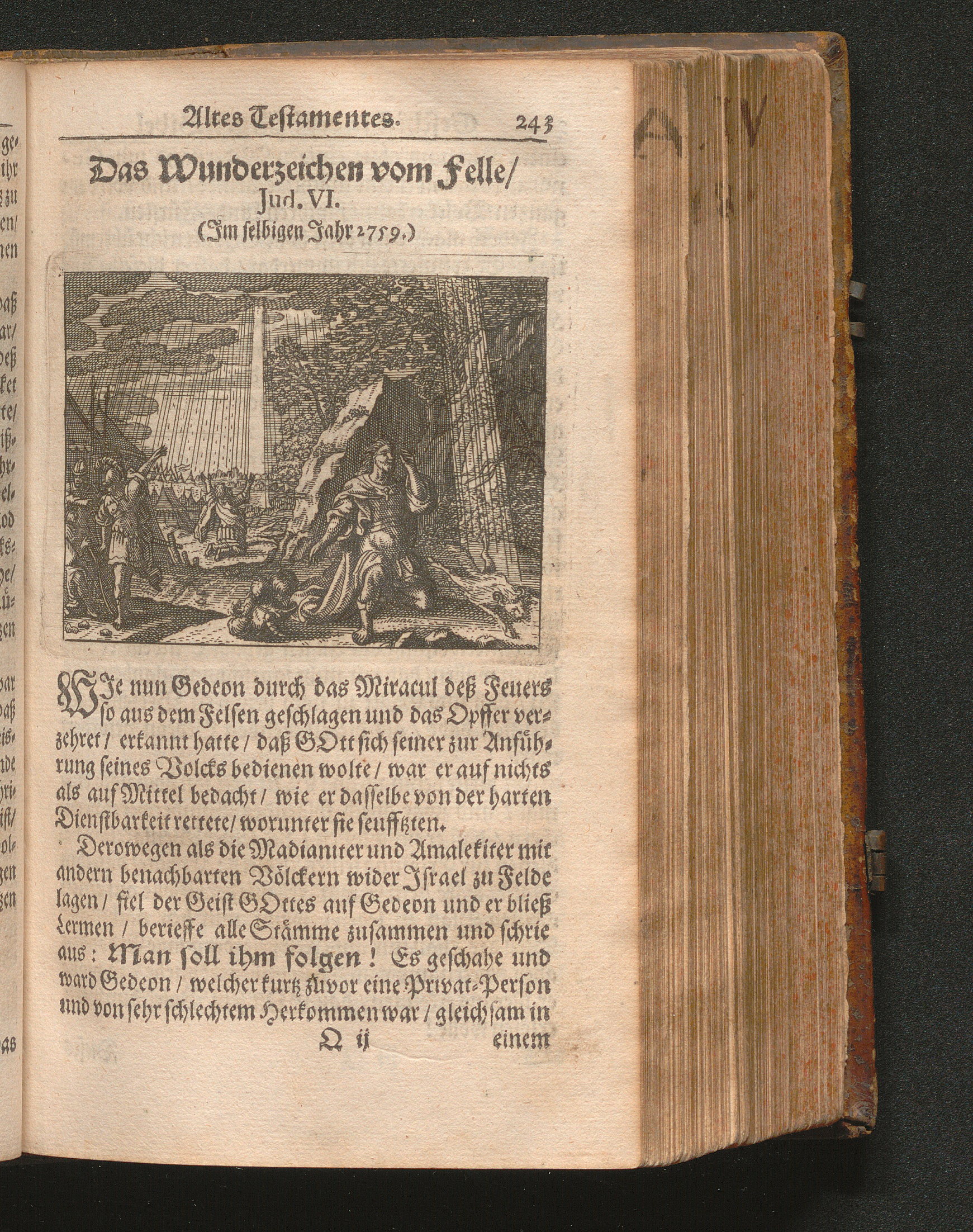 Catholischer Geschicht-Spiegel : Das ist: Historischer Auszug aller Begebenheiten Altes und Neuen Testaments/ mit erbaulichen und Lehrreichen Auslegungen der Heiligen Kirchen-Vätter untermengt; Zur Beförderung Göttlicher Erkandtnuß und Ausbreitung beydes der Macht- und Gnaden-Wercke deß Allerhöchsten/ sowol auf eine anmuhtige Erzehl- als Erklärungs-Art eingerichtet / Anfangs in Frantzösischer Sprach beschrieben durch Herrn de Royaumont, Priorn von Sombreval. Anitzo aber in die Hochteutsche reinlich überbracht durch M. K.