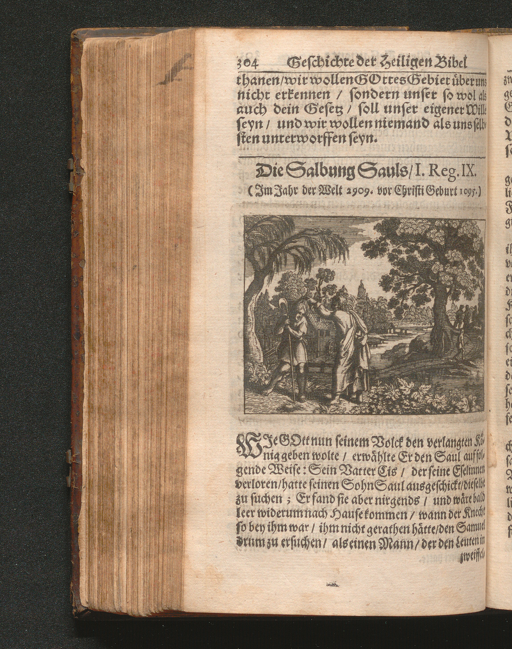 Catholischer Geschicht-Spiegel : Das ist: Historischer Auszug aller Begebenheiten Altes und Neuen Testaments/ mit erbaulichen und Lehrreichen Auslegungen der Heiligen Kirchen-Vätter untermengt; Zur Beförderung Göttlicher Erkandtnuß und Ausbreitung beydes der Macht- und Gnaden-Wercke deß Allerhöchsten/ sowol auf eine anmuhtige Erzehl- als Erklärungs-Art eingerichtet / Anfangs in Frantzösischer Sprach beschrieben durch Herrn de Royaumont, Priorn von Sombreval. Anitzo aber in die Hochteutsche reinlich überbracht durch M. K.