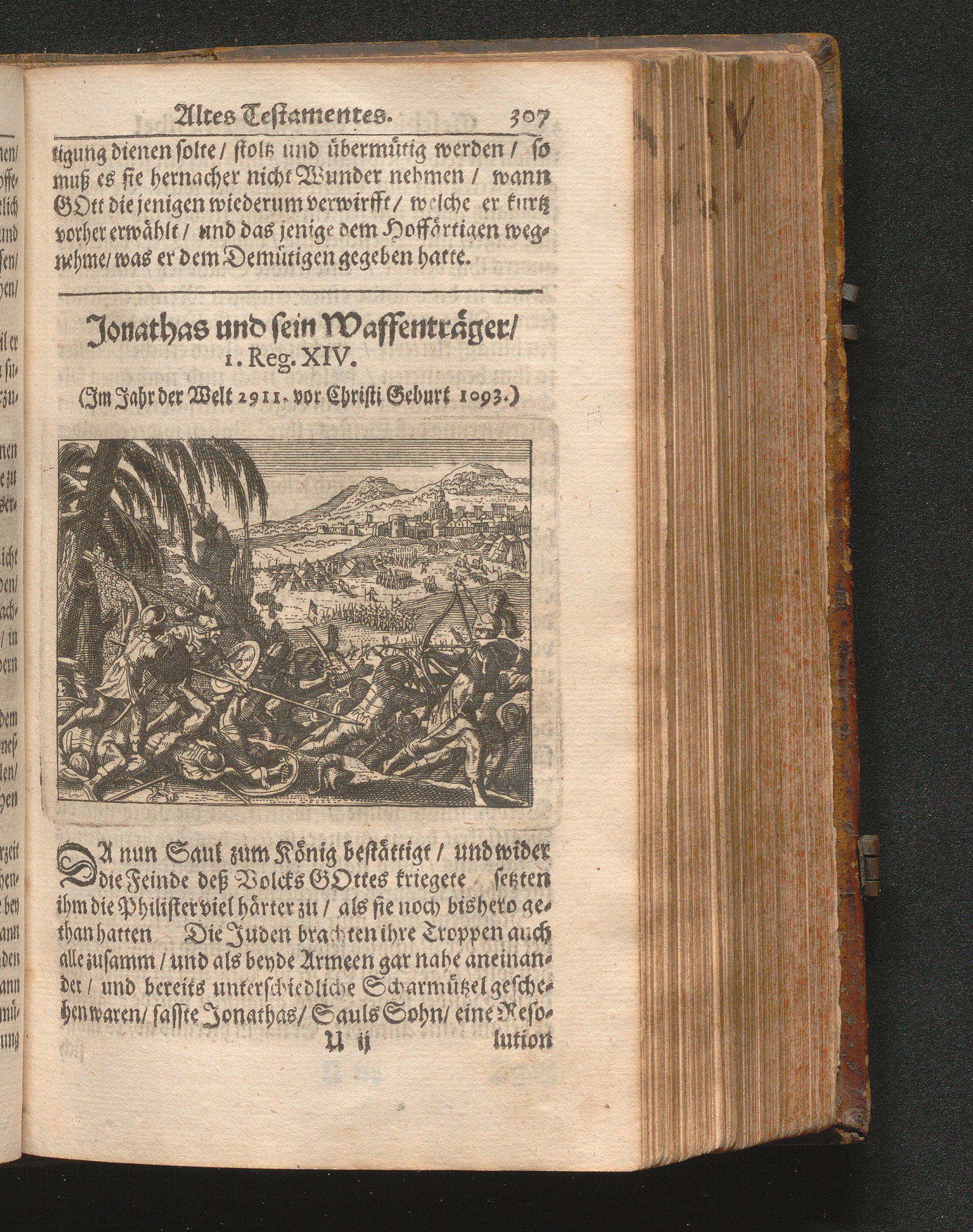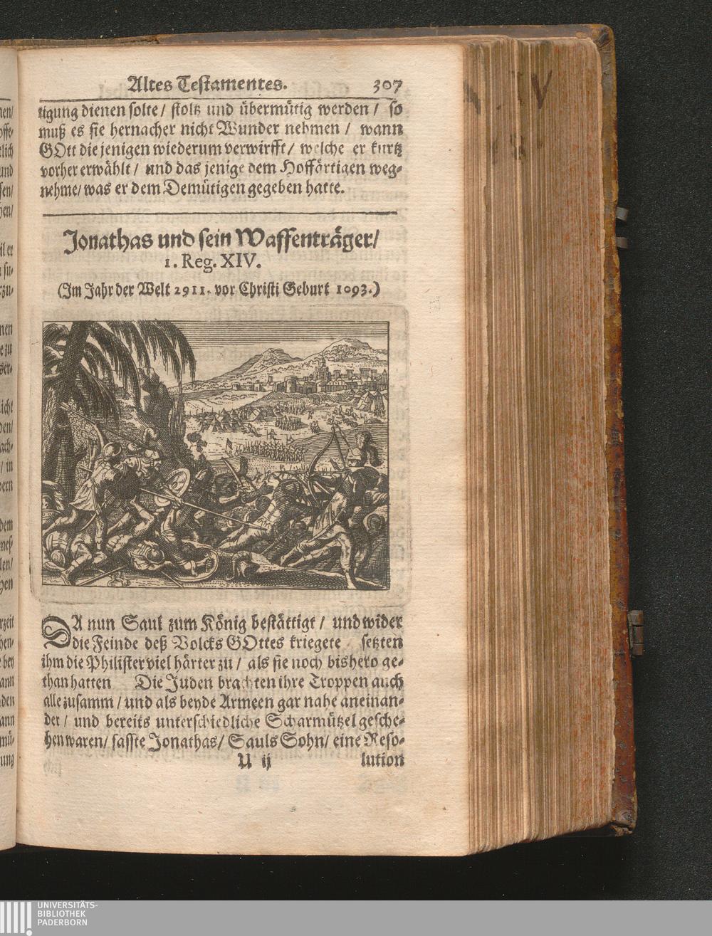 Catholischer Geschicht-Spiegel : Das ist: Historischer Auszug aller Begebenheiten Altes und Neuen Testaments/ mit erbaulichen und Lehrreichen Auslegungen der Heiligen Kirchen-Vätter untermengt; Zur Beförderung Göttlicher Erkandtnuß und Ausbreitung beydes der Macht- und Gnaden-Wercke deß Allerhöchsten/ sowol auf eine anmuhtige Erzehl- als Erklärungs-Art eingerichtet / Anfangs in Frantzösischer Sprach beschrieben durch Herrn de Royaumont, Priorn von Sombreval. Anitzo aber in die Hochteutsche reinlich überbracht durch M. K.