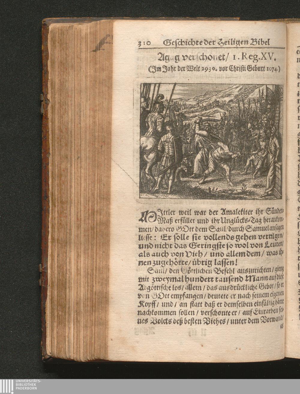 Catholischer Geschicht-Spiegel : Das ist: Historischer Auszug aller Begebenheiten Altes und Neuen Testaments/ mit erbaulichen und Lehrreichen Auslegungen der Heiligen Kirchen-Vätter untermengt; Zur Beförderung Göttlicher Erkandtnuß und Ausbreitung beydes der Macht- und Gnaden-Wercke deß Allerhöchsten/ sowol auf eine anmuhtige Erzehl- als Erklärungs-Art eingerichtet / Anfangs in Frantzösischer Sprach beschrieben durch Herrn de Royaumont, Priorn von Sombreval. Anitzo aber in die Hochteutsche reinlich überbracht durch M. K.