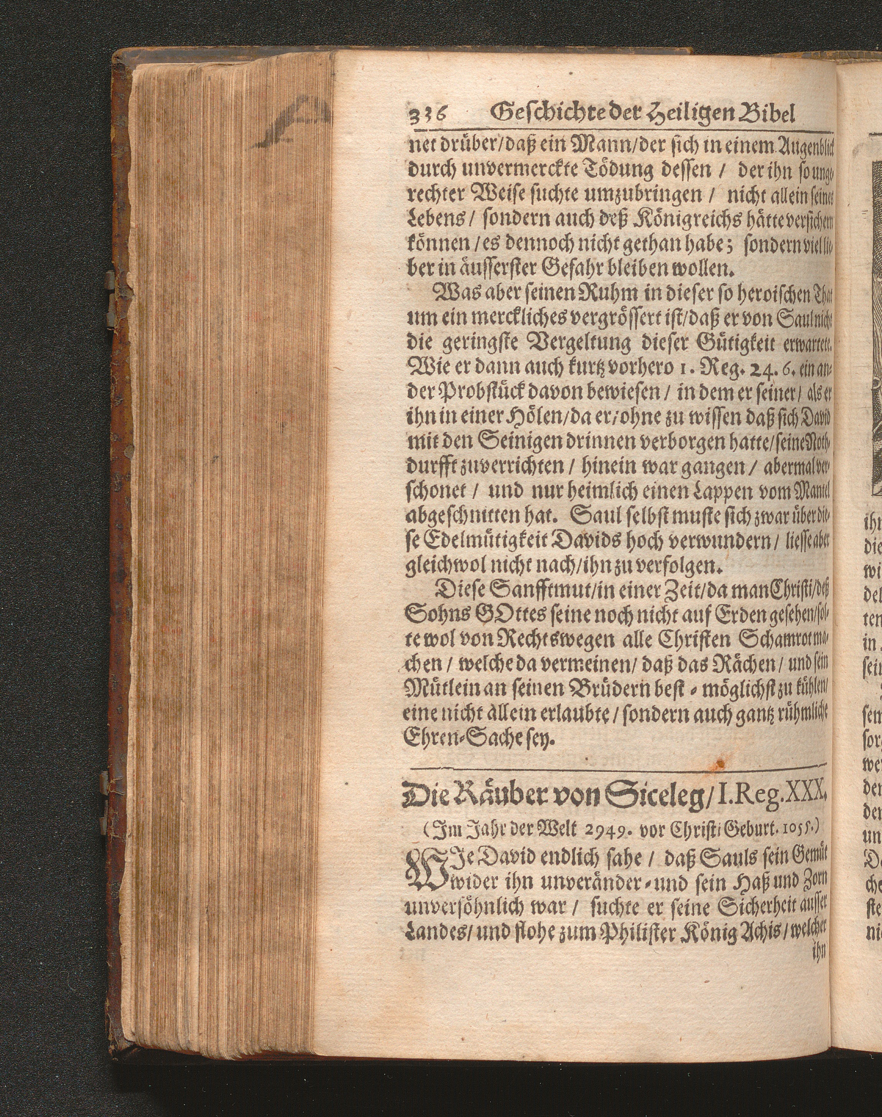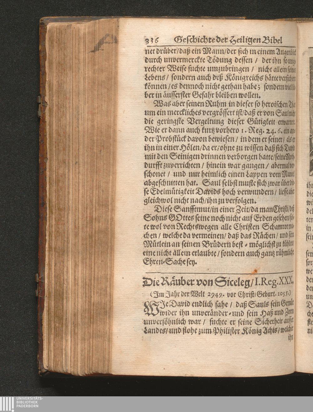 Catholischer Geschicht-Spiegel : Das ist: Historischer Auszug aller Begebenheiten Altes und Neuen Testaments/ mit erbaulichen und Lehrreichen Auslegungen der Heiligen Kirchen-Vätter untermengt; Zur Beförderung Göttlicher Erkandtnuß und Ausbreitung beydes der Macht- und Gnaden-Wercke deß Allerhöchsten/ sowol auf eine anmuhtige Erzehl- als Erklärungs-Art eingerichtet / Anfangs in Frantzösischer Sprach beschrieben durch Herrn de Royaumont, Priorn von Sombreval. Anitzo aber in die Hochteutsche reinlich überbracht durch M. K.