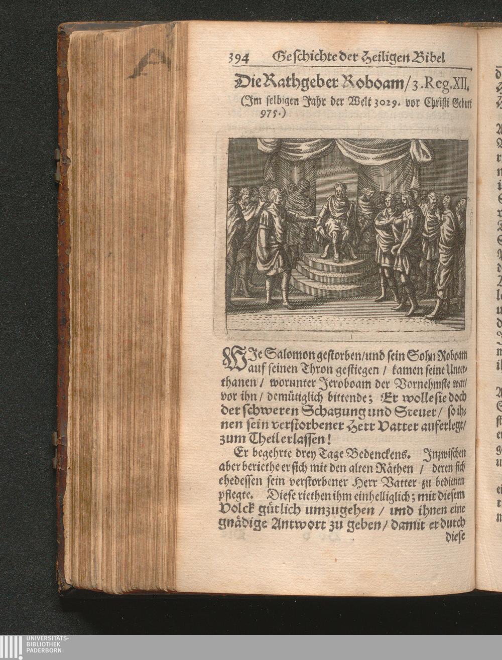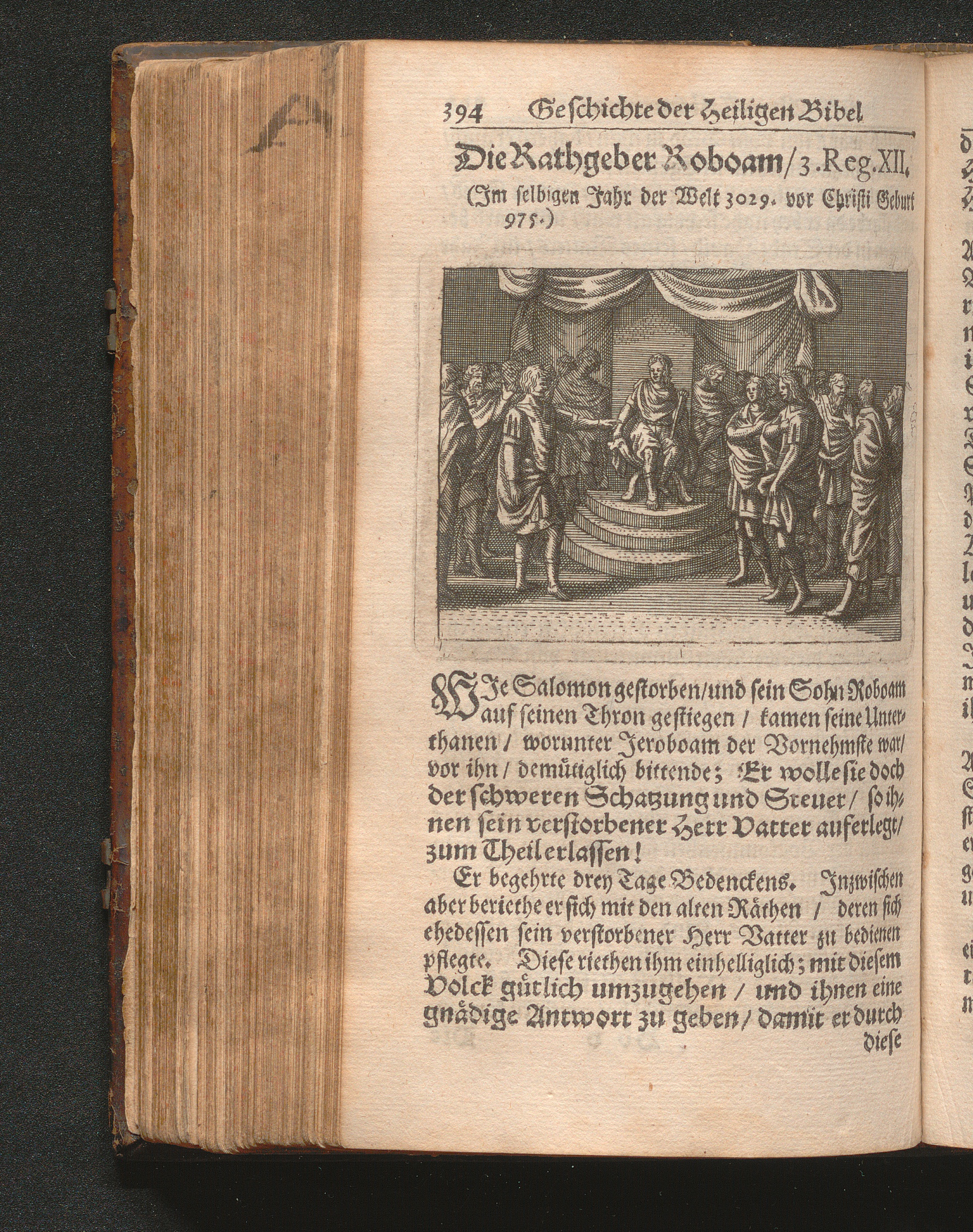 Catholischer Geschicht-Spiegel : Das ist: Historischer Auszug aller Begebenheiten Altes und Neuen Testaments/ mit erbaulichen und Lehrreichen Auslegungen der Heiligen Kirchen-Vätter untermengt; Zur Beförderung Göttlicher Erkandtnuß und Ausbreitung beydes der Macht- und Gnaden-Wercke deß Allerhöchsten/ sowol auf eine anmuhtige Erzehl- als Erklärungs-Art eingerichtet / Anfangs in Frantzösischer Sprach beschrieben durch Herrn de Royaumont, Priorn von Sombreval. Anitzo aber in die Hochteutsche reinlich überbracht durch M. K.