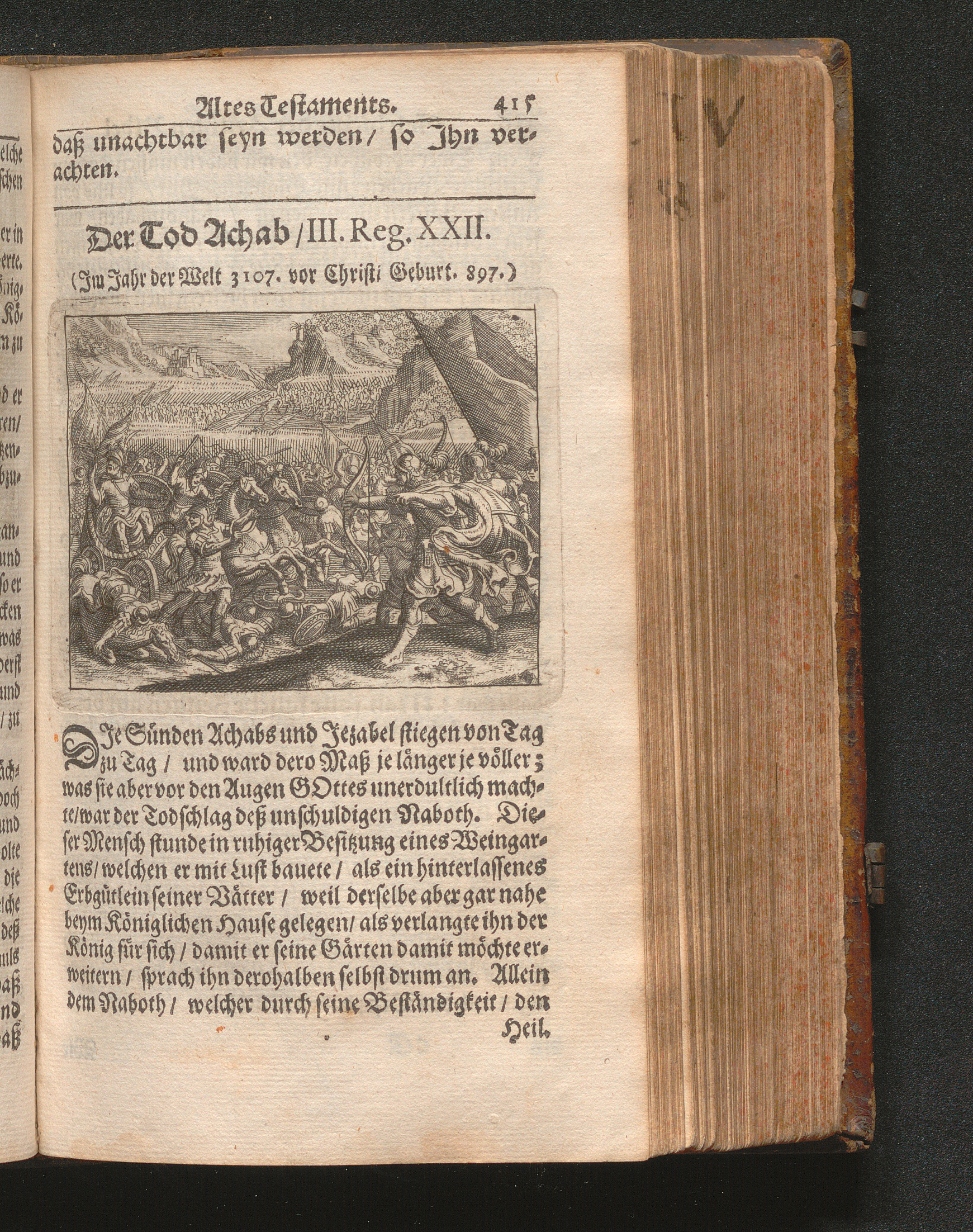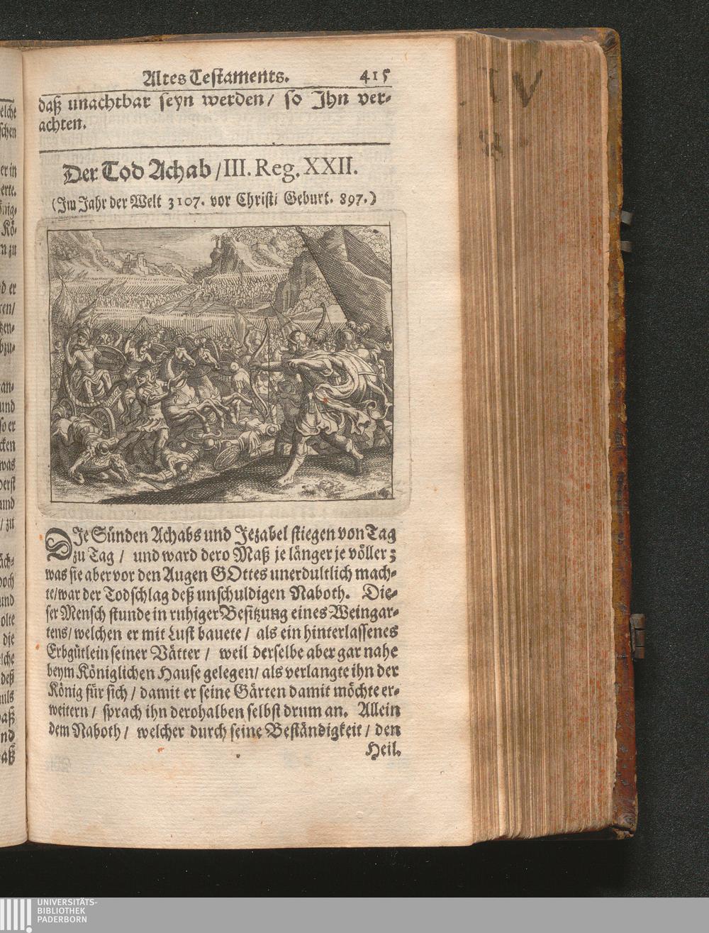 Catholischer Geschicht-Spiegel : Das ist: Historischer Auszug aller Begebenheiten Altes und Neuen Testaments/ mit erbaulichen und Lehrreichen Auslegungen der Heiligen Kirchen-Vätter untermengt; Zur Beförderung Göttlicher Erkandtnuß und Ausbreitung beydes der Macht- und Gnaden-Wercke deß Allerhöchsten/ sowol auf eine anmuhtige Erzehl- als Erklärungs-Art eingerichtet / Anfangs in Frantzösischer Sprach beschrieben durch Herrn de Royaumont, Priorn von Sombreval. Anitzo aber in die Hochteutsche reinlich überbracht durch M. K.