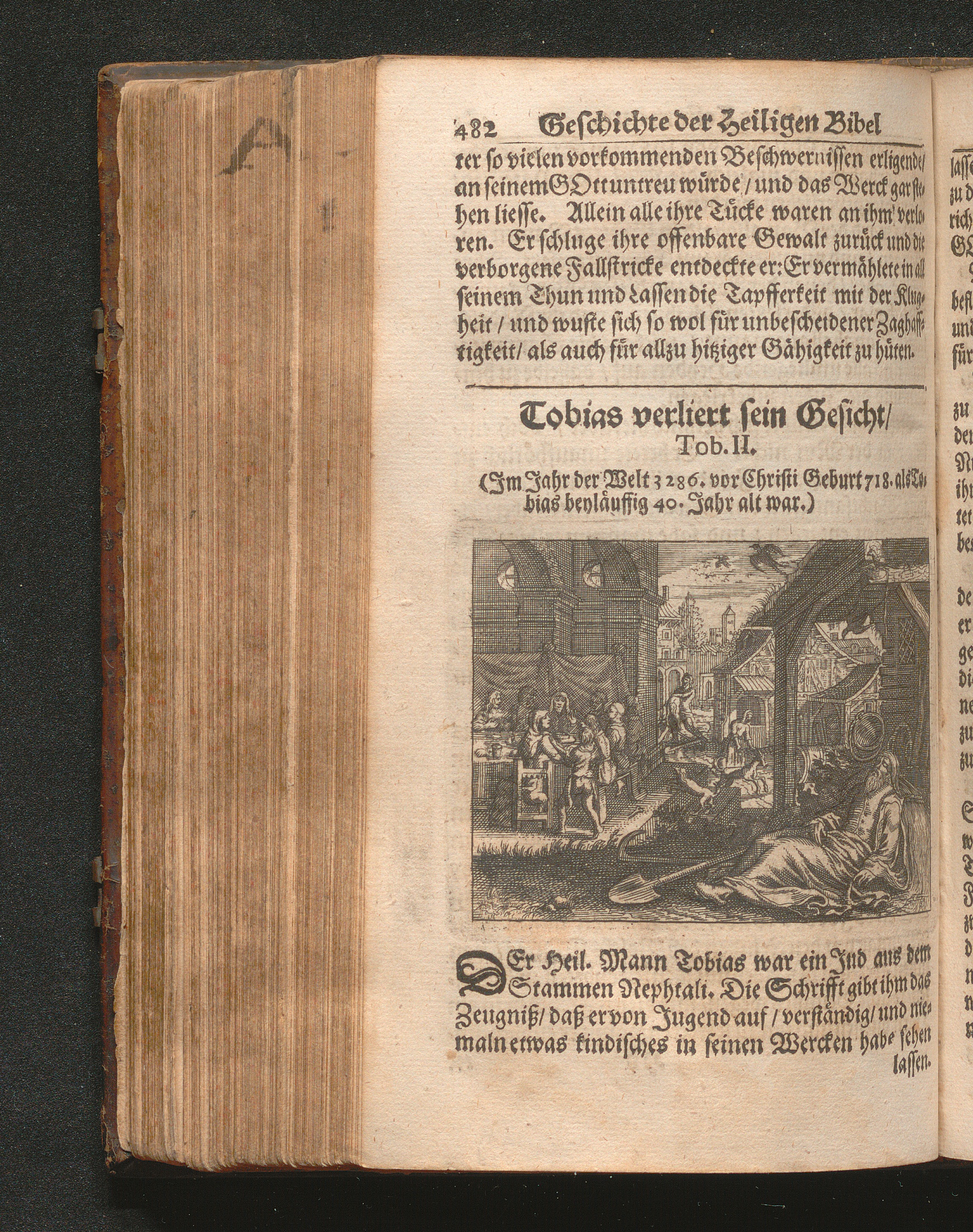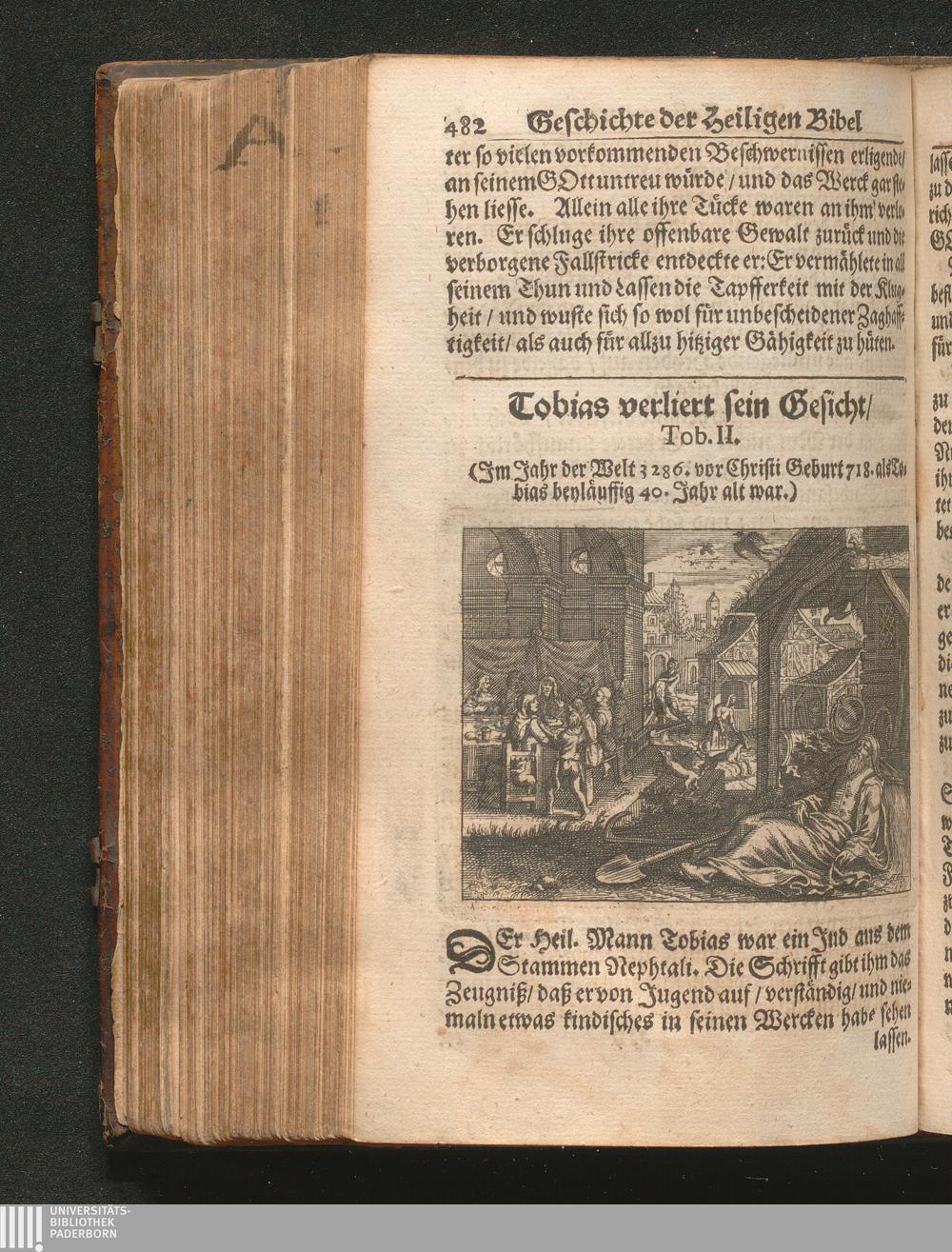 Catholischer Geschicht-Spiegel : Das ist: Historischer Auszug aller Begebenheiten Altes und Neuen Testaments/ mit erbaulichen und Lehrreichen Auslegungen der Heiligen Kirchen-Vätter untermengt; Zur Beförderung Göttlicher Erkandtnuß und Ausbreitung beydes der Macht- und Gnaden-Wercke deß Allerhöchsten/ sowol auf eine anmuhtige Erzehl- als Erklärungs-Art eingerichtet / Anfangs in Frantzösischer Sprach beschrieben durch Herrn de Royaumont, Priorn von Sombreval. Anitzo aber in die Hochteutsche reinlich überbracht durch M. K.
