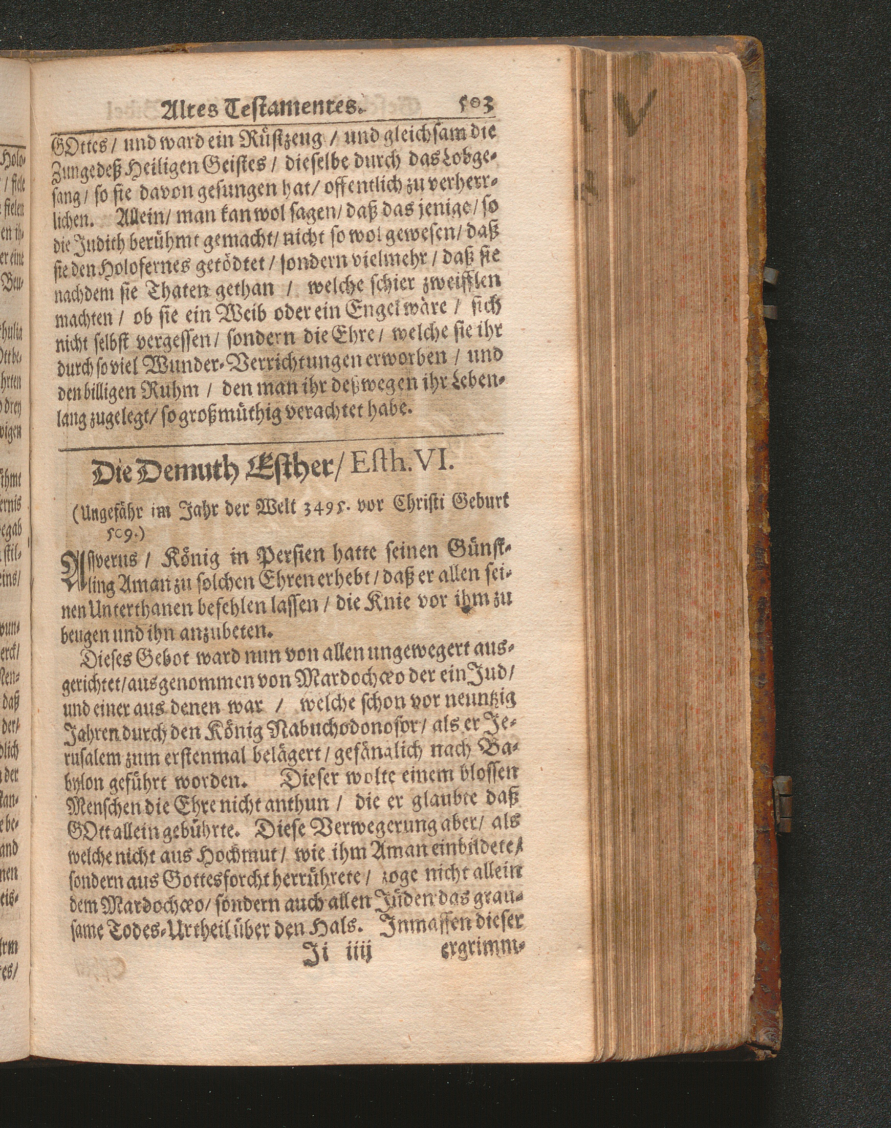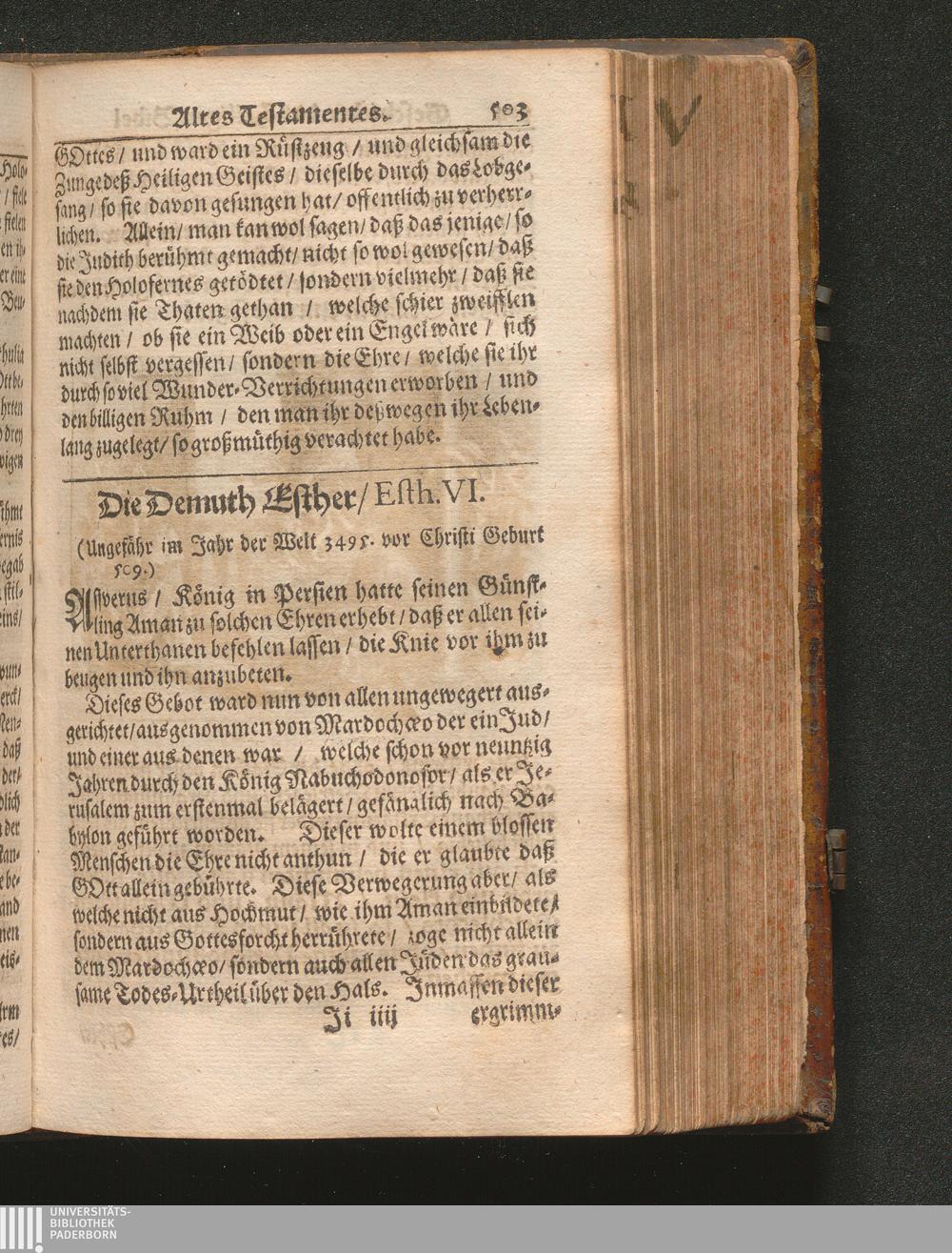 Catholischer Geschicht-Spiegel : Das ist: Historischer Auszug aller Begebenheiten Altes und Neuen Testaments/ mit erbaulichen und Lehrreichen Auslegungen der Heiligen Kirchen-Vätter untermengt; Zur Beförderung Göttlicher Erkandtnuß und Ausbreitung beydes der Macht- und Gnaden-Wercke deß Allerhöchsten/ sowol auf eine anmuhtige Erzehl- als Erklärungs-Art eingerichtet / Anfangs in Frantzösischer Sprach beschrieben durch Herrn de Royaumont, Priorn von Sombreval. Anitzo aber in die Hochteutsche reinlich überbracht durch M. K.