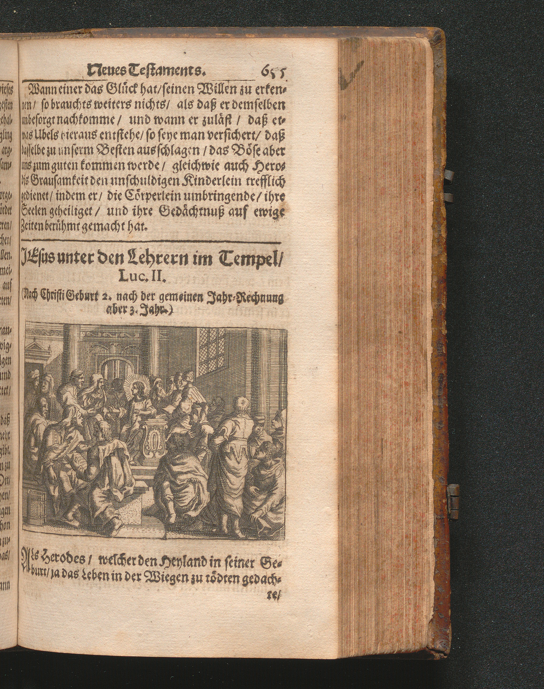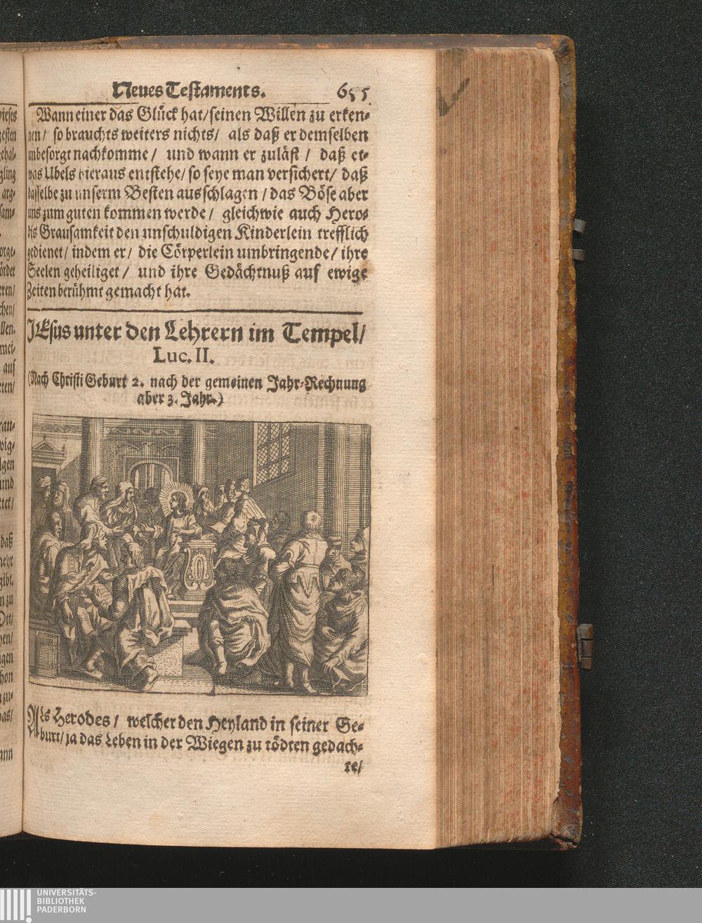 Catholischer Geschicht-Spiegel : Das ist: Historischer Auszug aller Begebenheiten Altes und Neuen Testaments/ mit erbaulichen und Lehrreichen Auslegungen der Heiligen Kirchen-Vätter untermengt; Zur Beförderung Göttlicher Erkandtnuß und Ausbreitung beydes der Macht- und Gnaden-Wercke deß Allerhöchsten/ sowol auf eine anmuhtige Erzehl- als Erklärungs-Art eingerichtet / Anfangs in Frantzösischer Sprach beschrieben durch Herrn de Royaumont, Priorn von Sombreval. Anitzo aber in die Hochteutsche reinlich überbracht durch M. K.