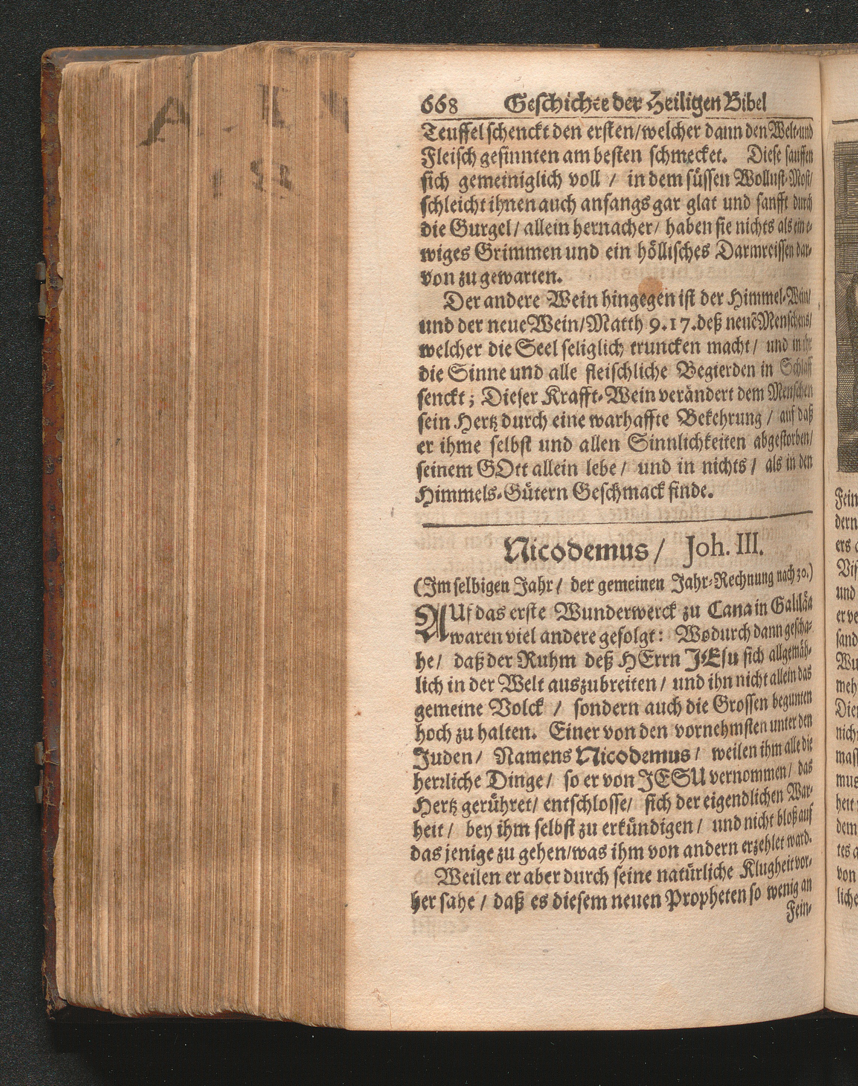 Catholischer Geschicht-Spiegel : Das ist: Historischer Auszug aller Begebenheiten Altes und Neuen Testaments/ mit erbaulichen und Lehrreichen Auslegungen der Heiligen Kirchen-Vätter untermengt; Zur Beförderung Göttlicher Erkandtnuß und Ausbreitung beydes der Macht- und Gnaden-Wercke deß Allerhöchsten/ sowol auf eine anmuhtige Erzehl- als Erklärungs-Art eingerichtet / Anfangs in Frantzösischer Sprach beschrieben durch Herrn de Royaumont, Priorn von Sombreval. Anitzo aber in die Hochteutsche reinlich überbracht durch M. K.