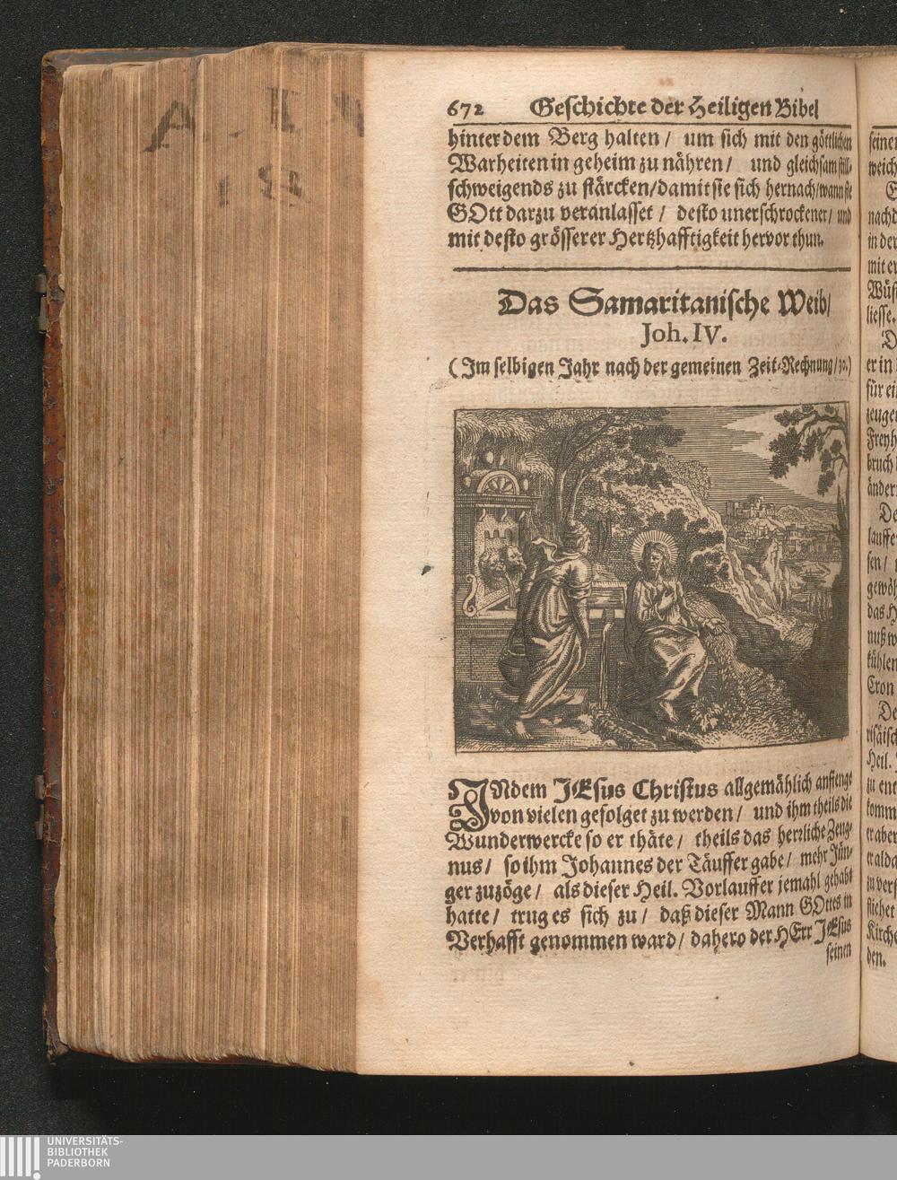 Catholischer Geschicht-Spiegel : Das ist: Historischer Auszug aller Begebenheiten Altes und Neuen Testaments/ mit erbaulichen und Lehrreichen Auslegungen der Heiligen Kirchen-Vätter untermengt; Zur Beförderung Göttlicher Erkandtnuß und Ausbreitung beydes der Macht- und Gnaden-Wercke deß Allerhöchsten/ sowol auf eine anmuhtige Erzehl- als Erklärungs-Art eingerichtet / Anfangs in Frantzösischer Sprach beschrieben durch Herrn de Royaumont, Priorn von Sombreval. Anitzo aber in die Hochteutsche reinlich überbracht durch M. K.