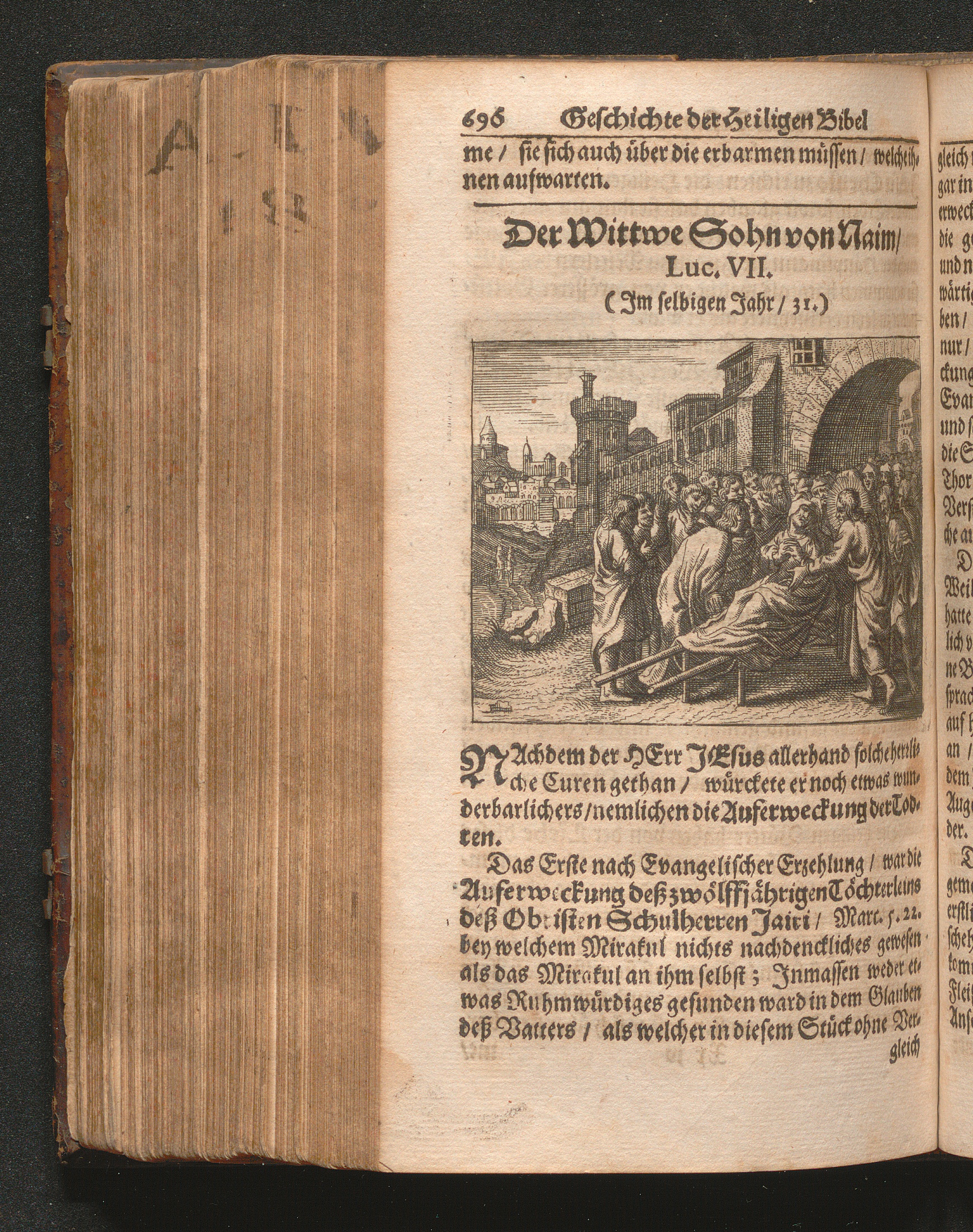 Catholischer Geschicht-Spiegel : Das ist: Historischer Auszug aller Begebenheiten Altes und Neuen Testaments/ mit erbaulichen und Lehrreichen Auslegungen der Heiligen Kirchen-Vätter untermengt; Zur Beförderung Göttlicher Erkandtnuß und Ausbreitung beydes der Macht- und Gnaden-Wercke deß Allerhöchsten/ sowol auf eine anmuhtige Erzehl- als Erklärungs-Art eingerichtet / Anfangs in Frantzösischer Sprach beschrieben durch Herrn de Royaumont, Priorn von Sombreval. Anitzo aber in die Hochteutsche reinlich überbracht durch M. K.