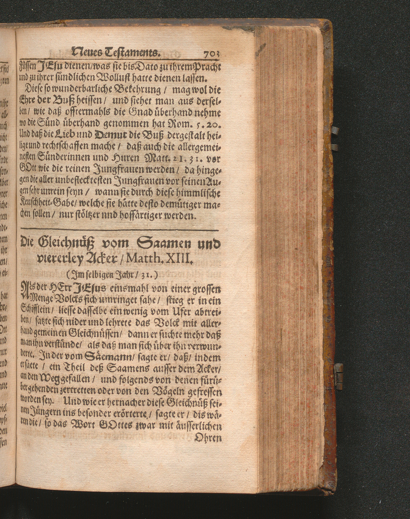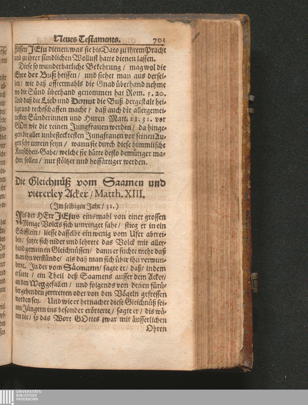 Catholischer Geschicht-Spiegel : Das ist: Historischer Auszug aller Begebenheiten Altes und Neuen Testaments/ mit erbaulichen und Lehrreichen Auslegungen der Heiligen Kirchen-Vätter untermengt; Zur Beförderung Göttlicher Erkandtnuß und Ausbreitung beydes der Macht- und Gnaden-Wercke deß Allerhöchsten/ sowol auf eine anmuhtige Erzehl- als Erklärungs-Art eingerichtet / Anfangs in Frantzösischer Sprach beschrieben durch Herrn de Royaumont, Priorn von Sombreval. Anitzo aber in die Hochteutsche reinlich überbracht durch M. K.