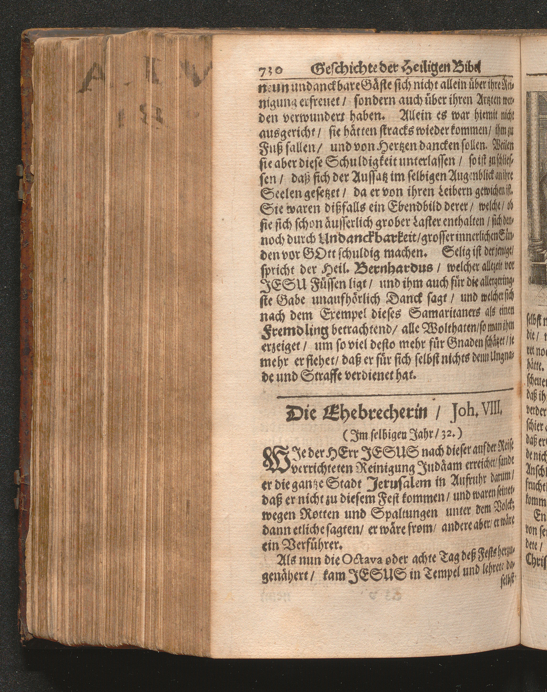 Catholischer Geschicht-Spiegel : Das ist: Historischer Auszug aller Begebenheiten Altes und Neuen Testaments/ mit erbaulichen und Lehrreichen Auslegungen der Heiligen Kirchen-Vätter untermengt; Zur Beförderung Göttlicher Erkandtnuß und Ausbreitung beydes der Macht- und Gnaden-Wercke deß Allerhöchsten/ sowol auf eine anmuhtige Erzehl- als Erklärungs-Art eingerichtet / Anfangs in Frantzösischer Sprach beschrieben durch Herrn de Royaumont, Priorn von Sombreval. Anitzo aber in die Hochteutsche reinlich überbracht durch M. K.