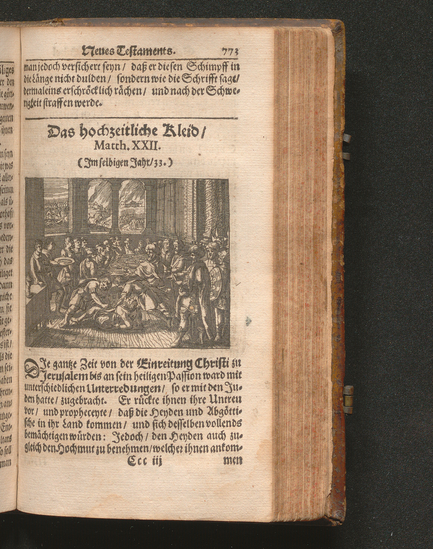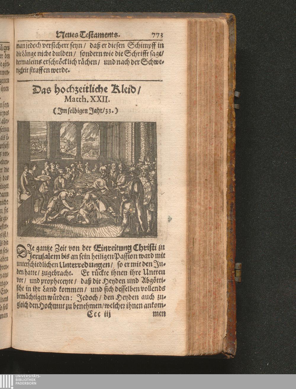 Catholischer Geschicht-Spiegel : Das ist: Historischer Auszug aller Begebenheiten Altes und Neuen Testaments/ mit erbaulichen und Lehrreichen Auslegungen der Heiligen Kirchen-Vätter untermengt; Zur Beförderung Göttlicher Erkandtnuß und Ausbreitung beydes der Macht- und Gnaden-Wercke deß Allerhöchsten/ sowol auf eine anmuhtige Erzehl- als Erklärungs-Art eingerichtet / Anfangs in Frantzösischer Sprach beschrieben durch Herrn de Royaumont, Priorn von Sombreval. Anitzo aber in die Hochteutsche reinlich überbracht durch M. K.
