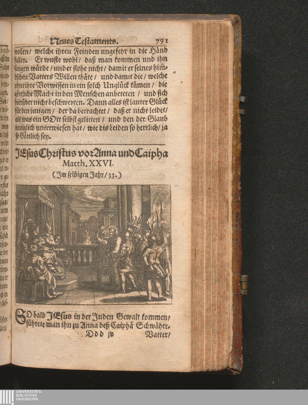 Catholischer Geschicht-Spiegel : Das ist: Historischer Auszug aller Begebenheiten Altes und Neuen Testaments/ mit erbaulichen und Lehrreichen Auslegungen der Heiligen Kirchen-Vätter untermengt; Zur Beförderung Göttlicher Erkandtnuß und Ausbreitung beydes der Macht- und Gnaden-Wercke deß Allerhöchsten/ sowol auf eine anmuhtige Erzehl- als Erklärungs-Art eingerichtet / Anfangs in Frantzösischer Sprach beschrieben durch Herrn de Royaumont, Priorn von Sombreval. Anitzo aber in die Hochteutsche reinlich überbracht durch M. K.