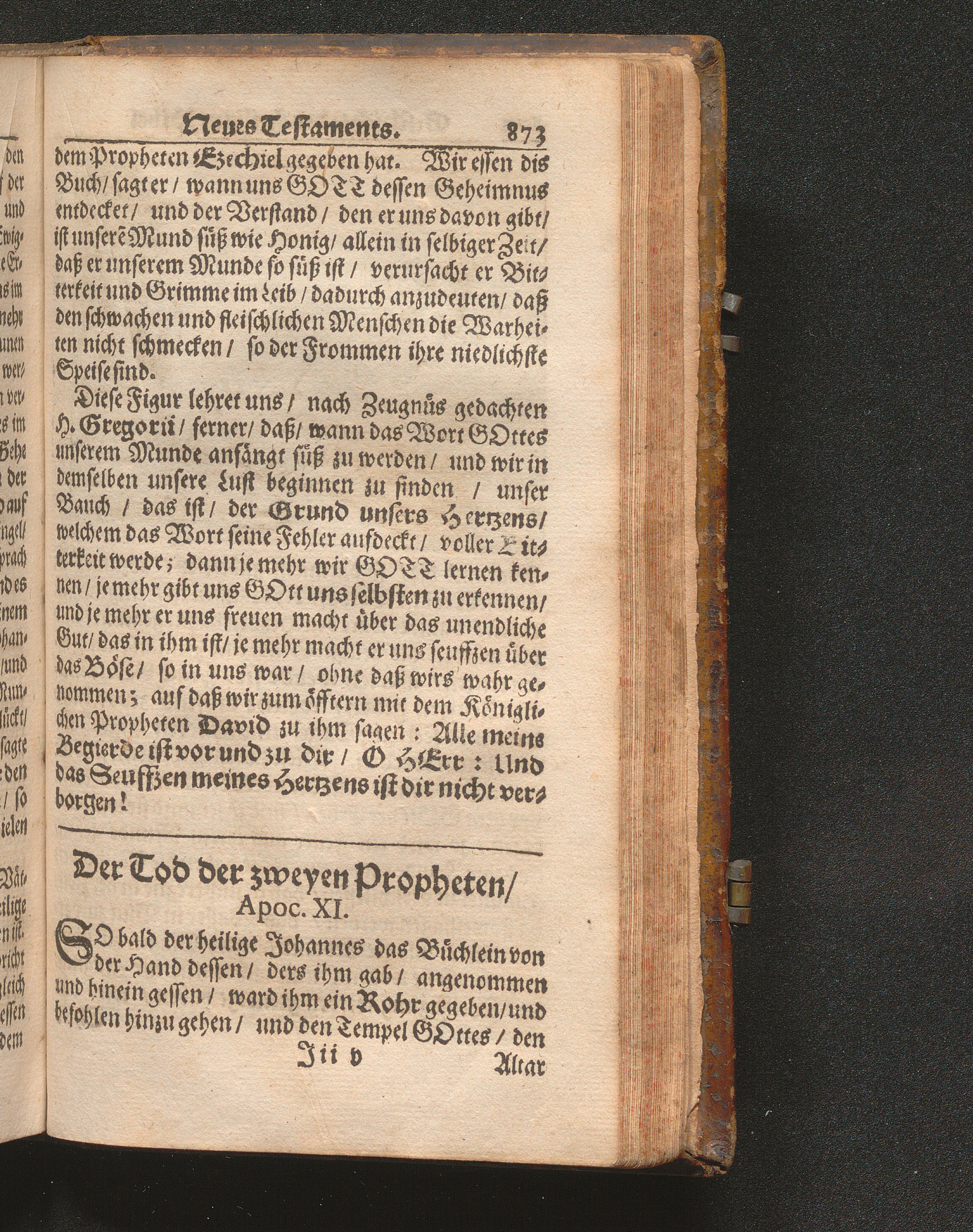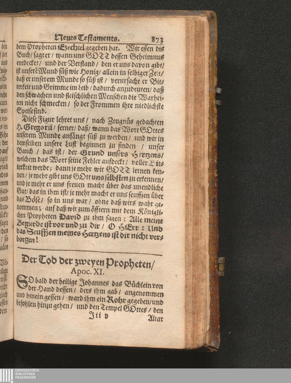 Catholischer Geschicht-Spiegel : Das ist: Historischer Auszug aller Begebenheiten Altes und Neuen Testaments/ mit erbaulichen und Lehrreichen Auslegungen der Heiligen Kirchen-Vätter untermengt; Zur Beförderung Göttlicher Erkandtnuß und Ausbreitung beydes der Macht- und Gnaden-Wercke deß Allerhöchsten/ sowol auf eine anmuhtige Erzehl- als Erklärungs-Art eingerichtet / Anfangs in Frantzösischer Sprach beschrieben durch Herrn de Royaumont, Priorn von Sombreval. Anitzo aber in die Hochteutsche reinlich überbracht durch M. K.
