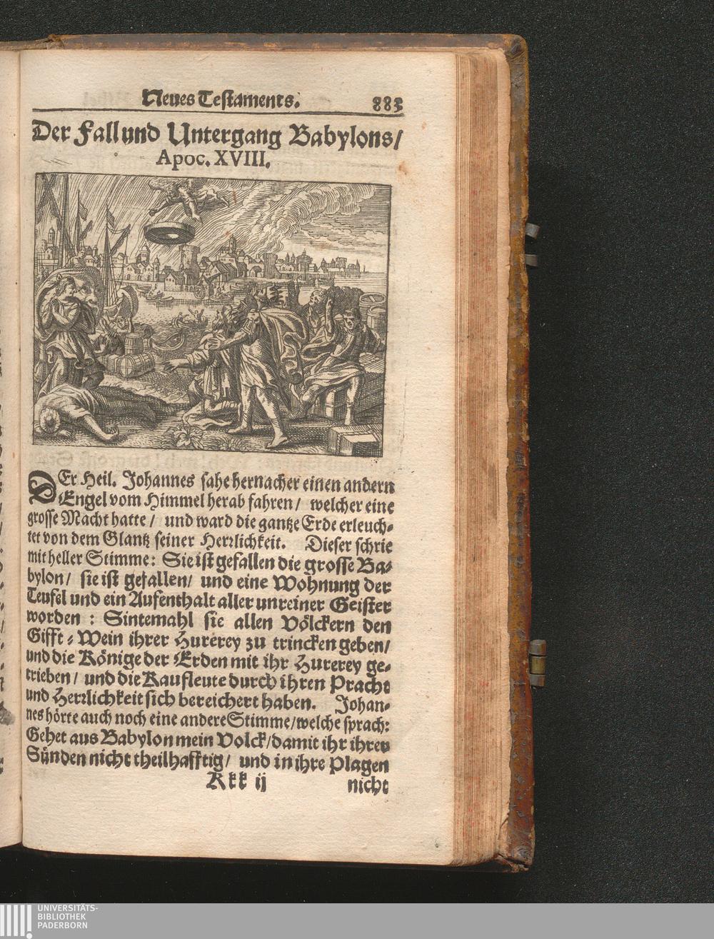 Catholischer Geschicht-Spiegel : Das ist: Historischer Auszug aller Begebenheiten Altes und Neuen Testaments/ mit erbaulichen und Lehrreichen Auslegungen der Heiligen Kirchen-Vätter untermengt; Zur Beförderung Göttlicher Erkandtnuß und Ausbreitung beydes der Macht- und Gnaden-Wercke deß Allerhöchsten/ sowol auf eine anmuhtige Erzehl- als Erklärungs-Art eingerichtet / Anfangs in Frantzösischer Sprach beschrieben durch Herrn de Royaumont, Priorn von Sombreval. Anitzo aber in die Hochteutsche reinlich überbracht durch M. K.