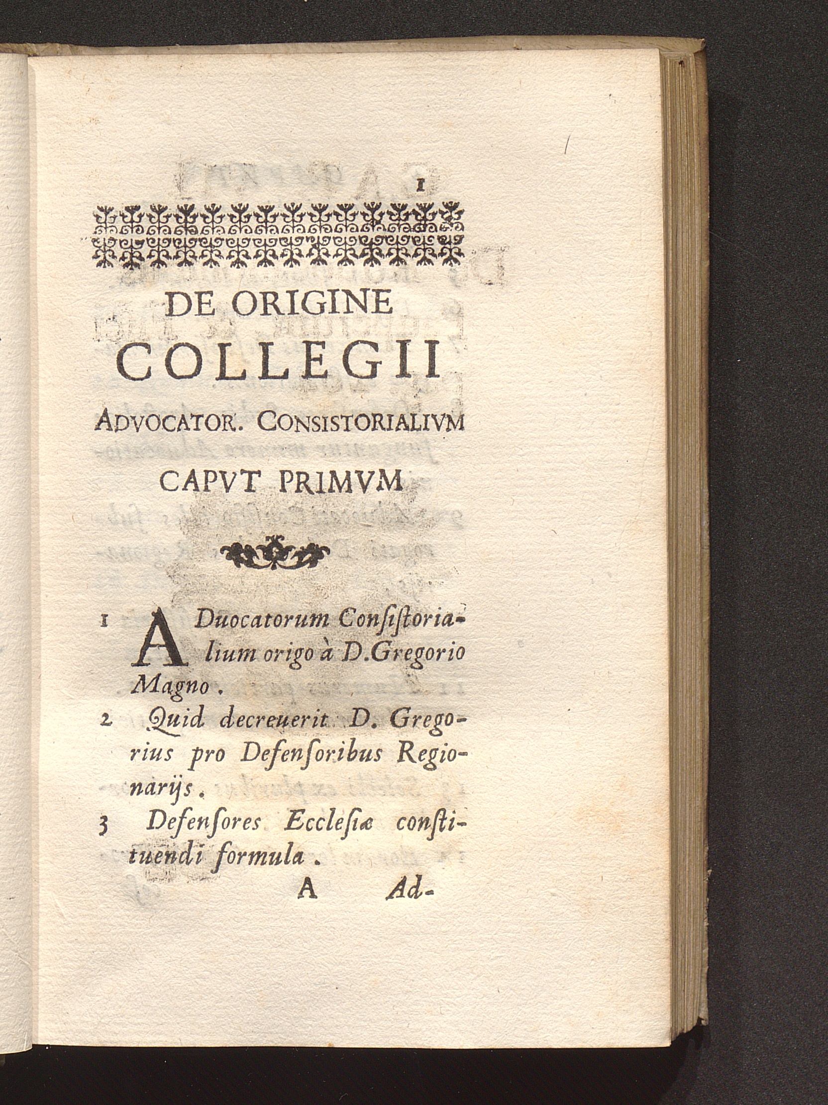 Cap. I. De Origine Collegij Aduocatorum Constistorialium