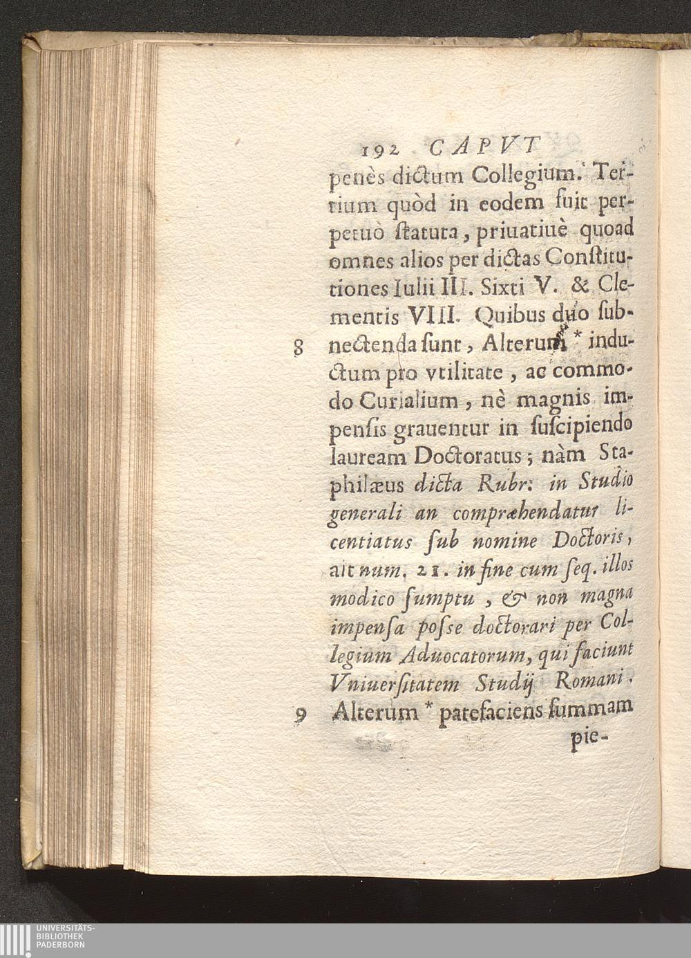 9 Collegium Aduocatorum Consistorialium confert lauream Doctoratus modica impensa[...]