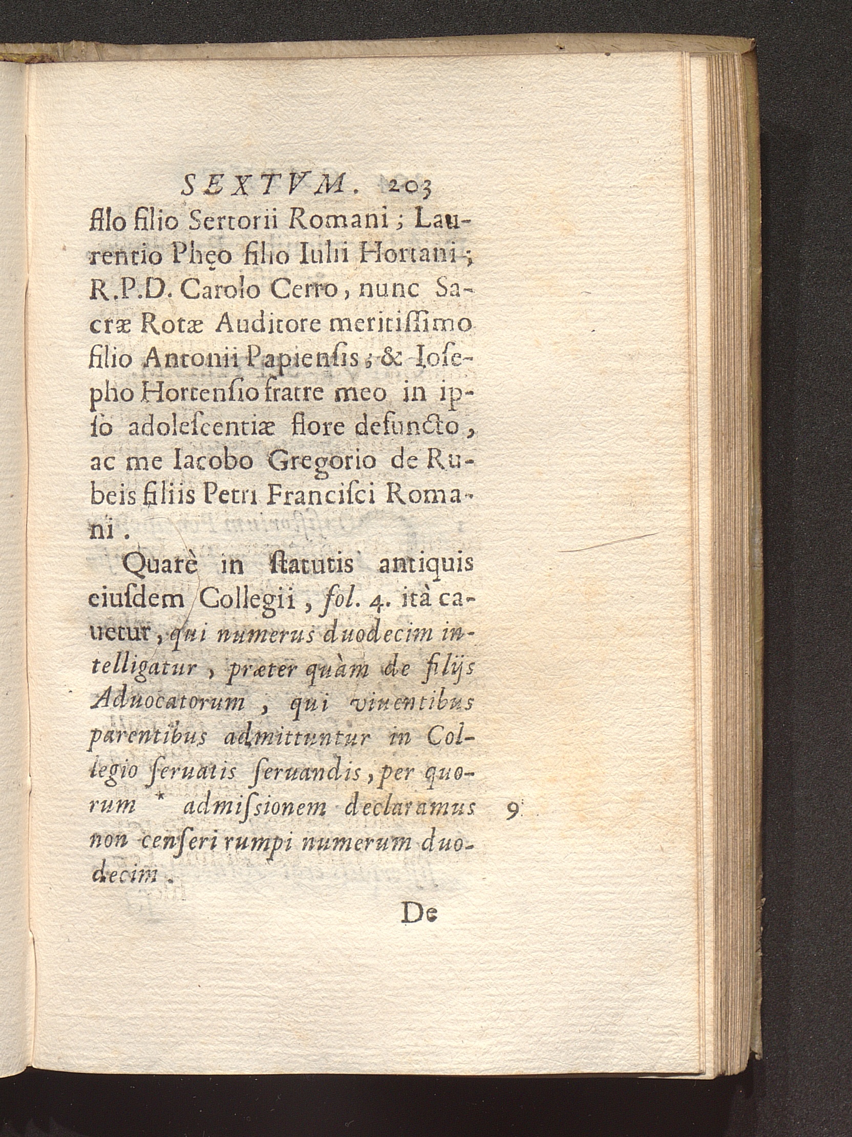 9 Filij Aduocatorum Consistorialium admissi in Collegium non rumpunt numerum duodenarium[...]