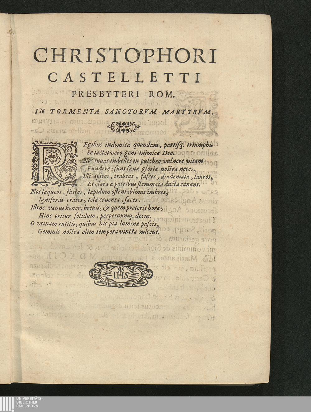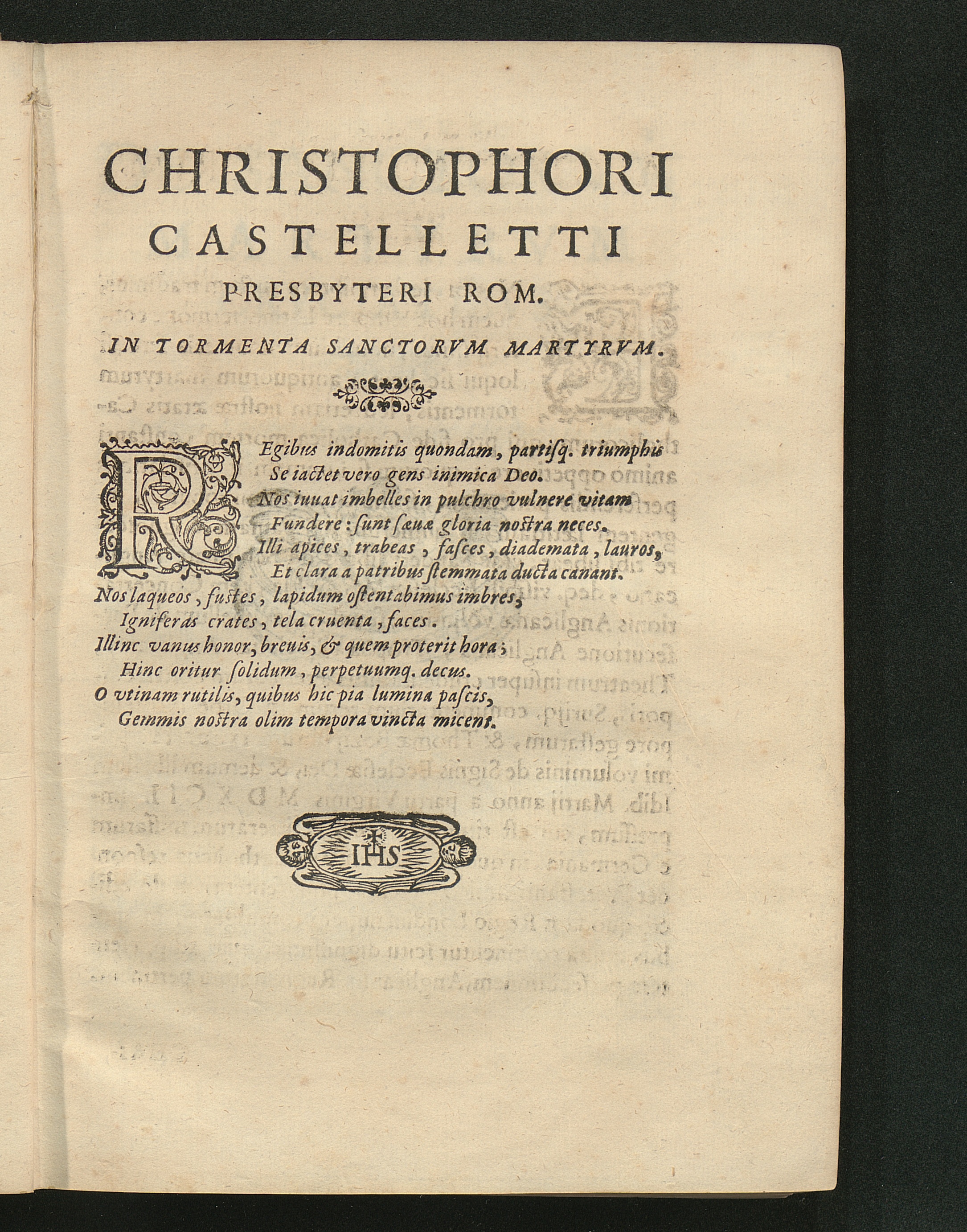 De Ss. Martyrvm Crvciatibvs Antonii Gallonii Rom. Congregationis Oratorii Presbyteri Liber : Quo potissimum instrumenta, & modi, quibus ijdem Christi martyres olim torquebantur, accuratissime tabellis expressa describuntur / [Ill.: Antonio Tempesta]