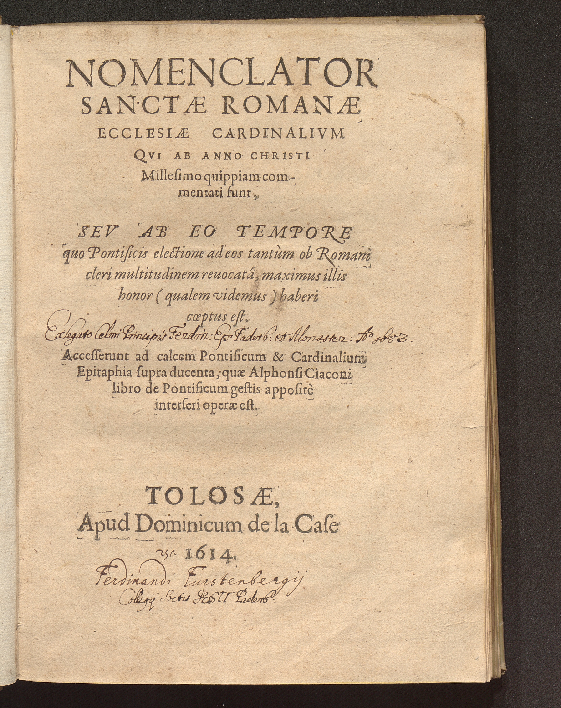 Nomenclator Sanctae Romanae Ecclesiae Cardinalivm Qvi Ab Anno Christi Millesimo quippiam commentati sunt, Sev Ab Eo Tempore quo Pontificis electione ad eos tantùm ob Romani cleri multitudinem reuocatâ, maximus illis honor (qualem videmus) haberi coeptus est : Accesserunt ad calcem Pontificum & Cardinalium Epitaphia supra ducenta, quae Alphonsi Ciaconi libro de Pontificum gestis appositè interseri operae est / [Verf.: Henri-Louis Chasteigner de la Rocheposay]