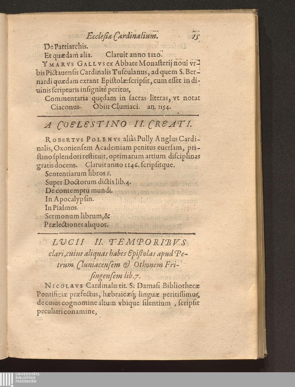Nomenclator Sanctae Romanae Ecclesiae Cardinalivm Qvi Ab Anno Christi Millesimo quippiam commentati sunt, Sev Ab Eo Tempore quo Pontificis electione ad eos tantùm ob Romani cleri multitudinem reuocatâ, maximus illis honor (qualem videmus) haberi coeptus est : Accesserunt ad calcem Pontificum & Cardinalium Epitaphia supra ducenta, quae Alphonsi Ciaconi libro de Pontificum gestis appositè interseri operae est / [Verf.: Henri-Louis Chasteigner de la Rocheposay]