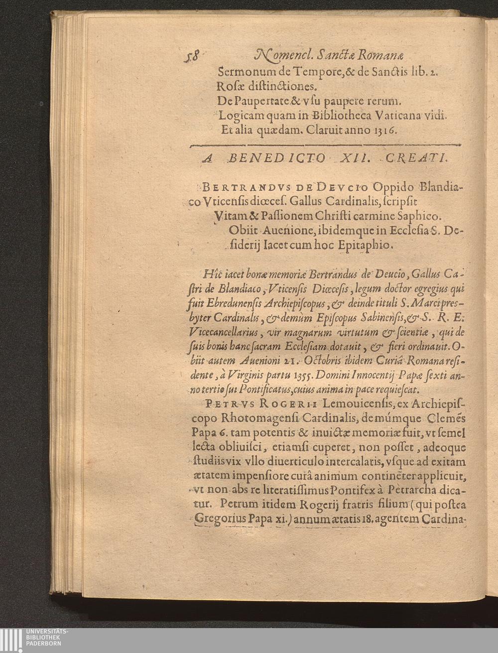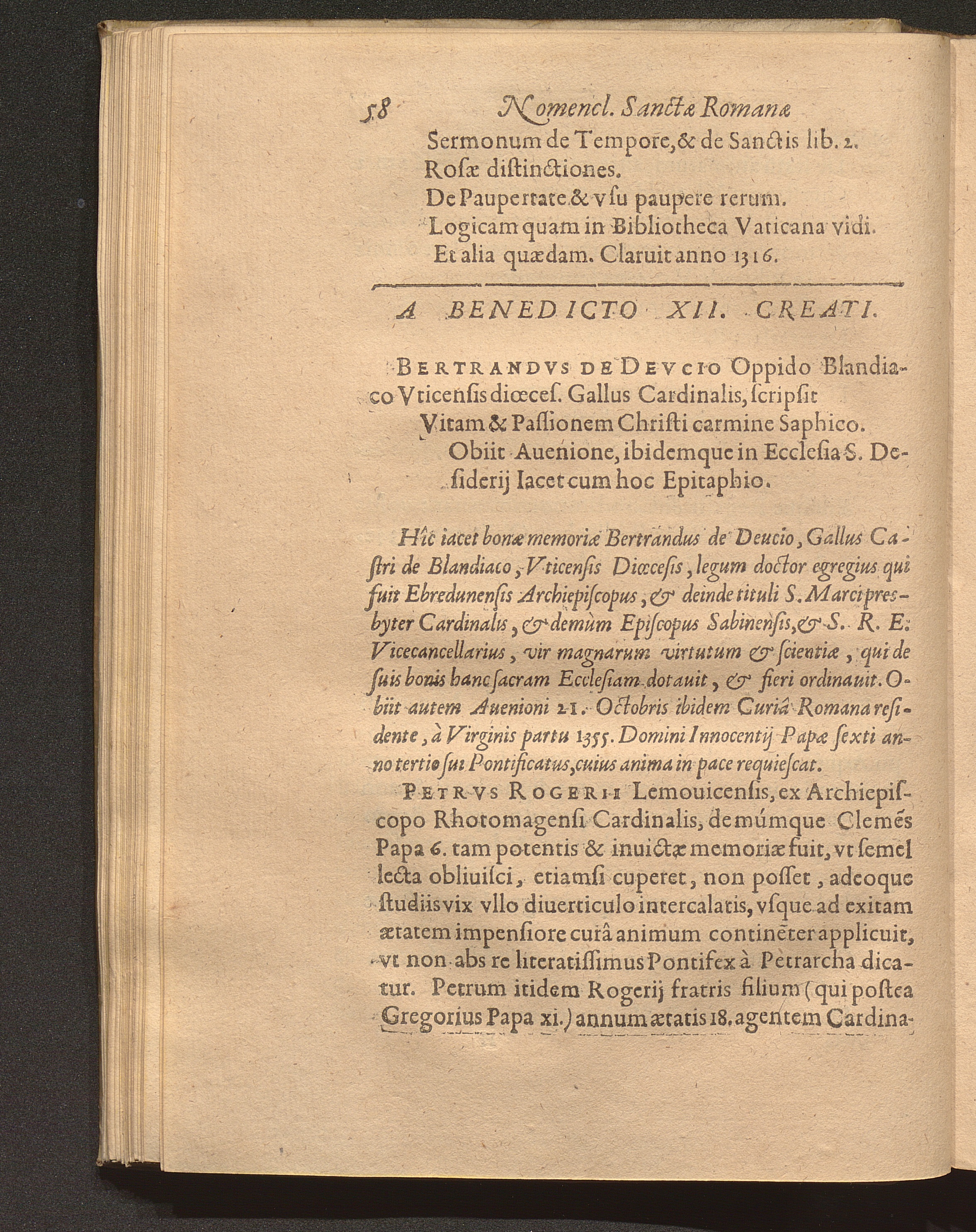 Nomenclator Sanctae Romanae Ecclesiae Cardinalivm Qvi Ab Anno Christi Millesimo quippiam commentati sunt, Sev Ab Eo Tempore quo Pontificis electione ad eos tantùm ob Romani cleri multitudinem reuocatâ, maximus illis honor (qualem videmus) haberi coeptus est : Accesserunt ad calcem Pontificum & Cardinalium Epitaphia supra ducenta, quae Alphonsi Ciaconi libro de Pontificum gestis appositè interseri operae est / [Verf.: Henri-Louis Chasteigner de la Rocheposay]